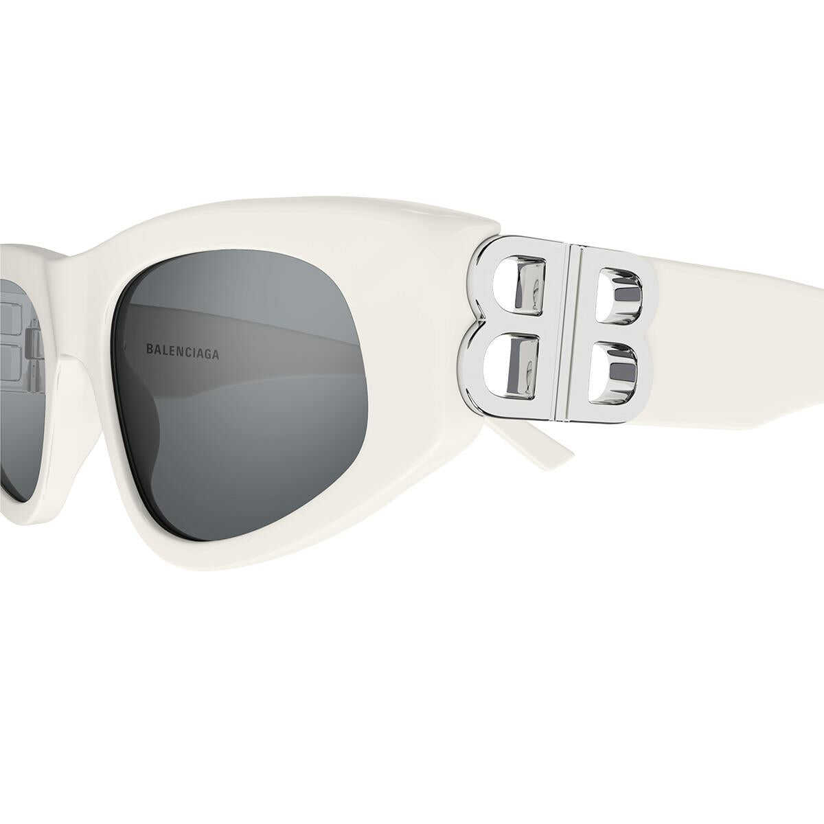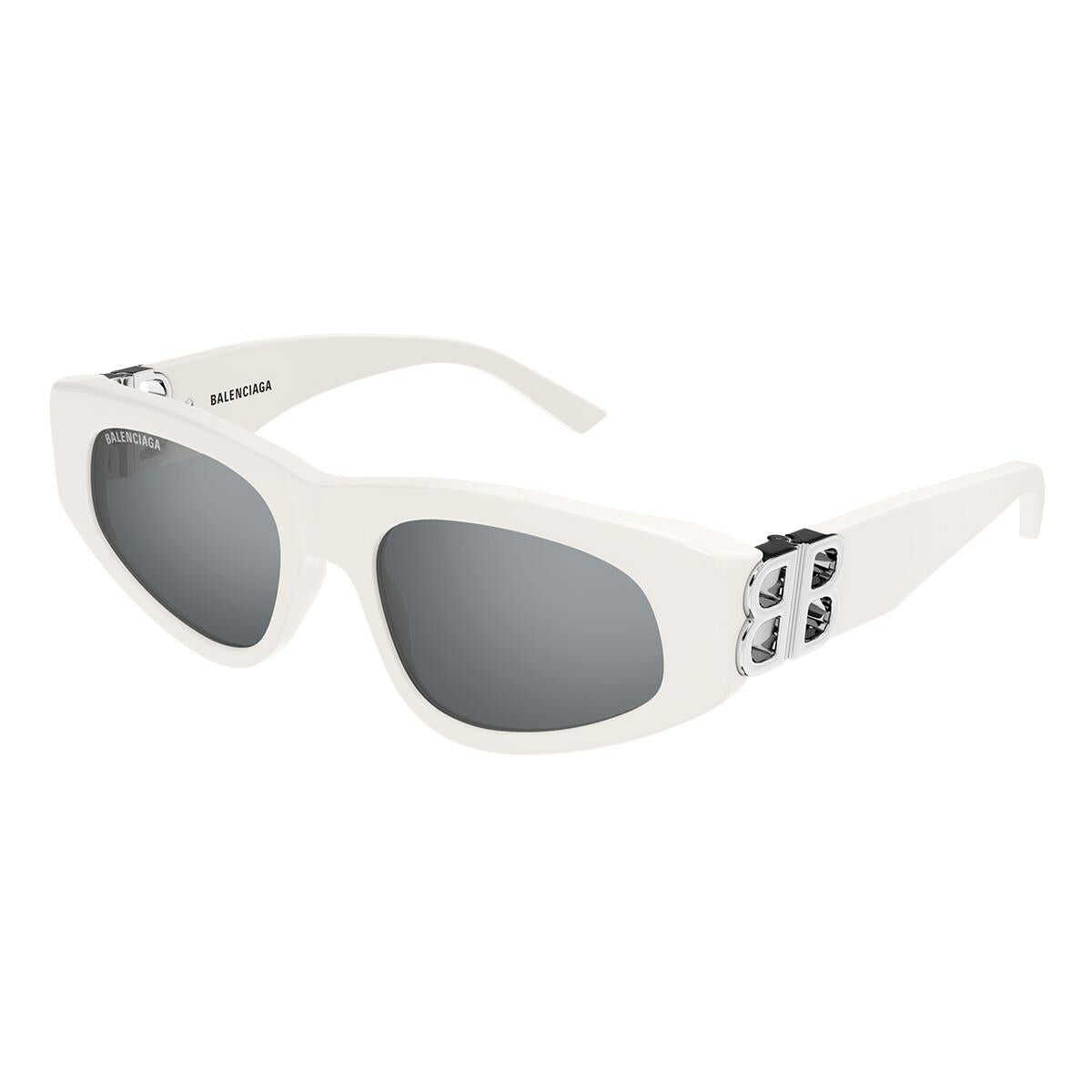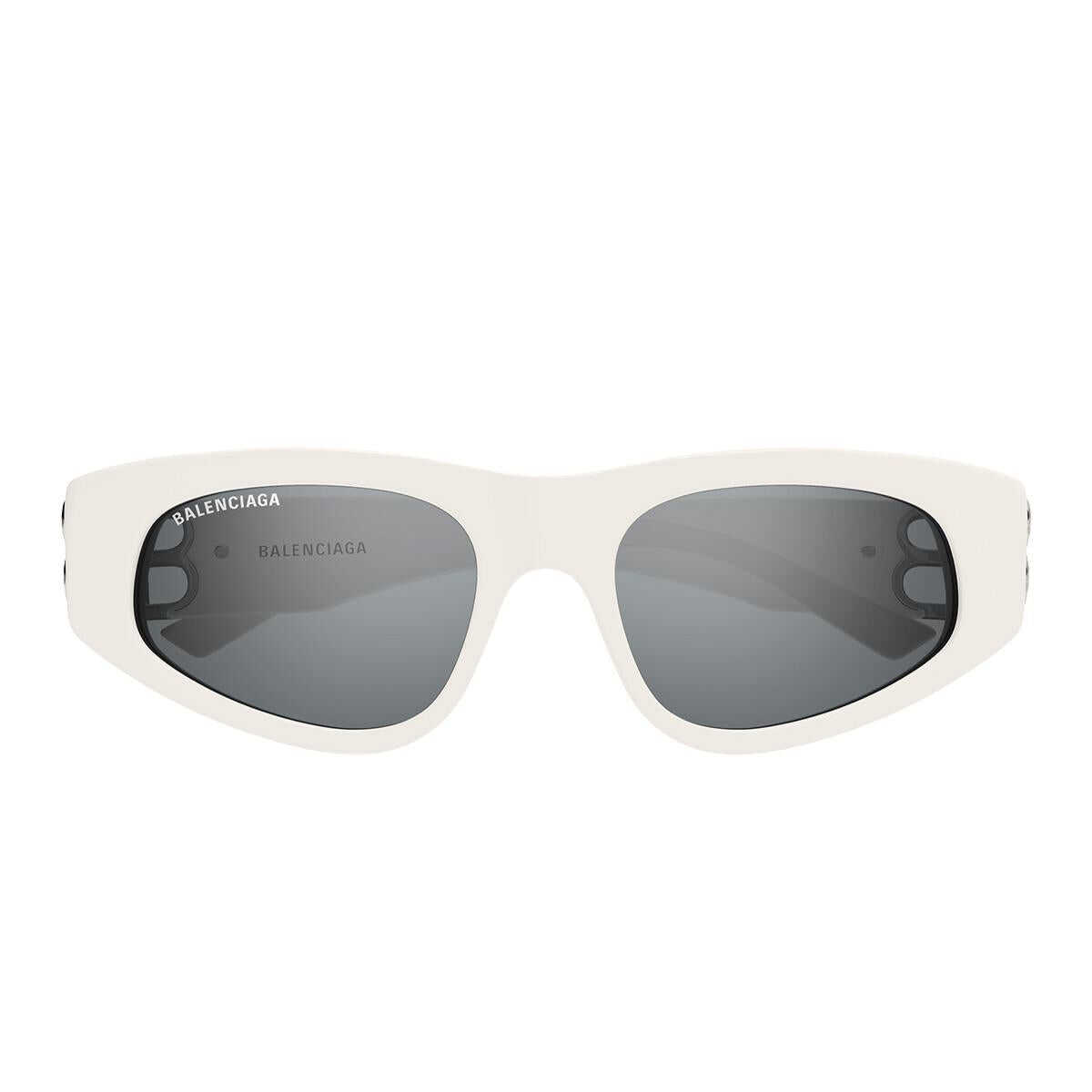Sunglasses Balenciaga White Silver Mirrored Oval Acetate WOMEN