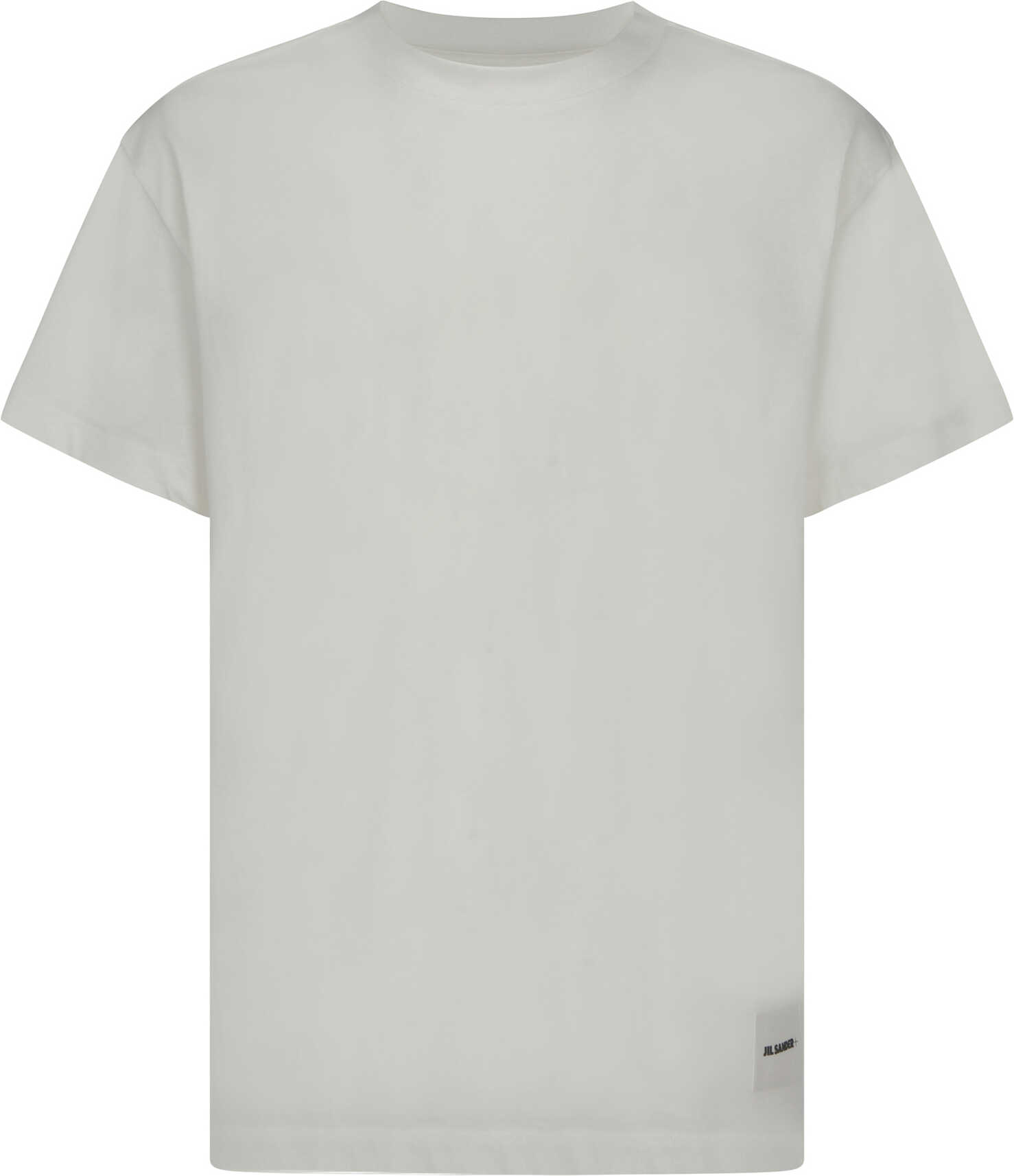 Cotton T-Shirt by Jil Sander, ribbed crew neck, iconic brand monogram patch applied on front, regular fit. Set consisting of 3 pieces.