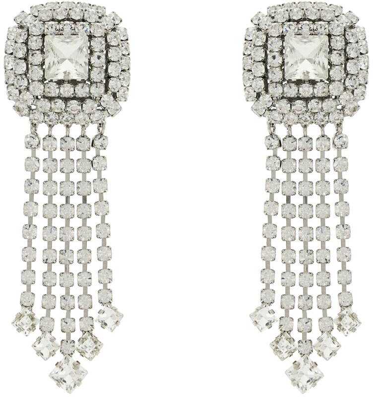 These Alessandra Rich drop earrings are made of silver-plated brass with applied crystals. They feature a clip closure for easy wear.