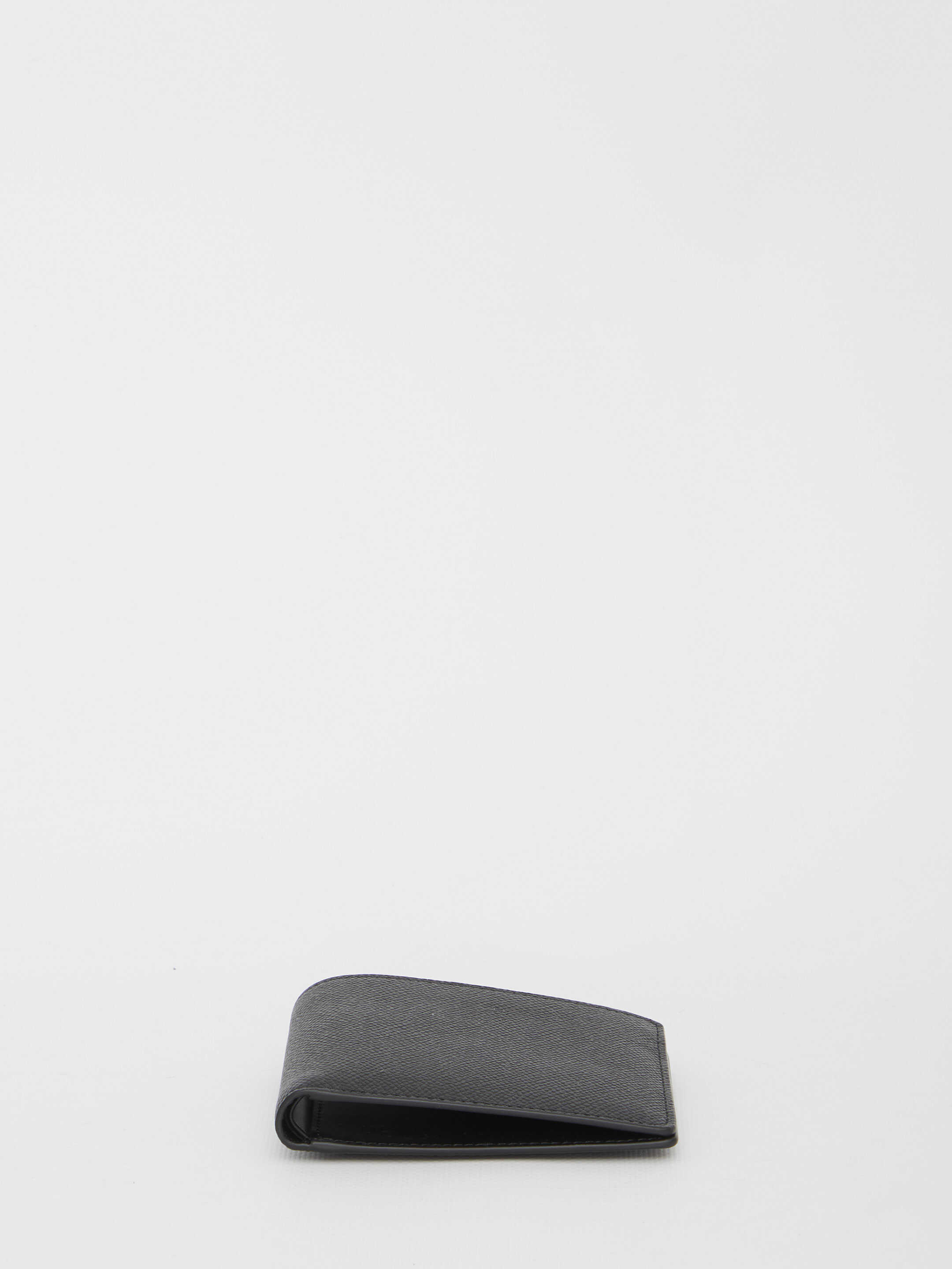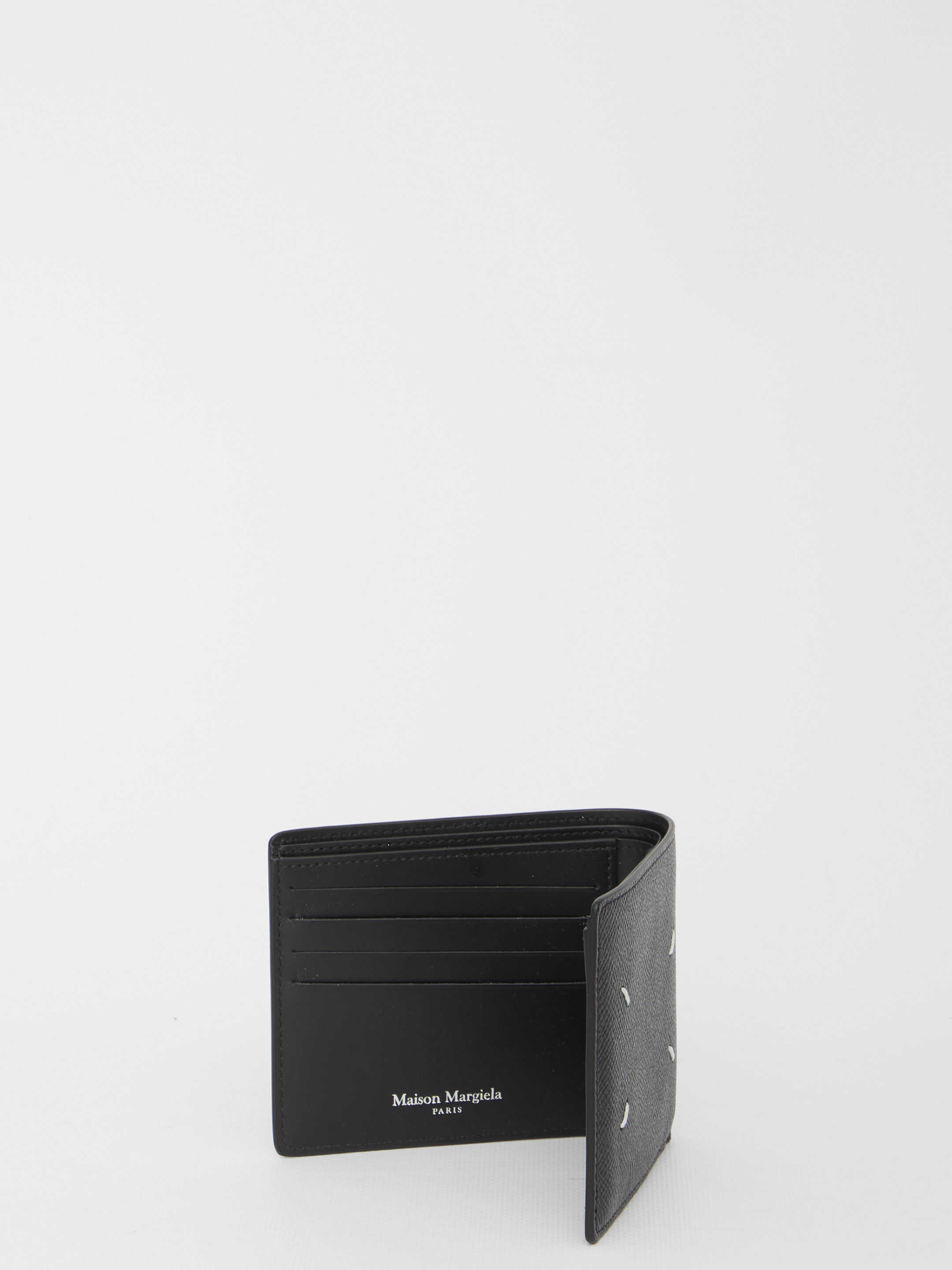 Bi-fold wallet in black grained leather with four rear seams and embossed Maison Margiela logo on the inside. It features two bill compartments, eight card slots and two additional slip pockets. Any leather imperfections are not to be considered manufacturing defects, but a peculiarity of the material.