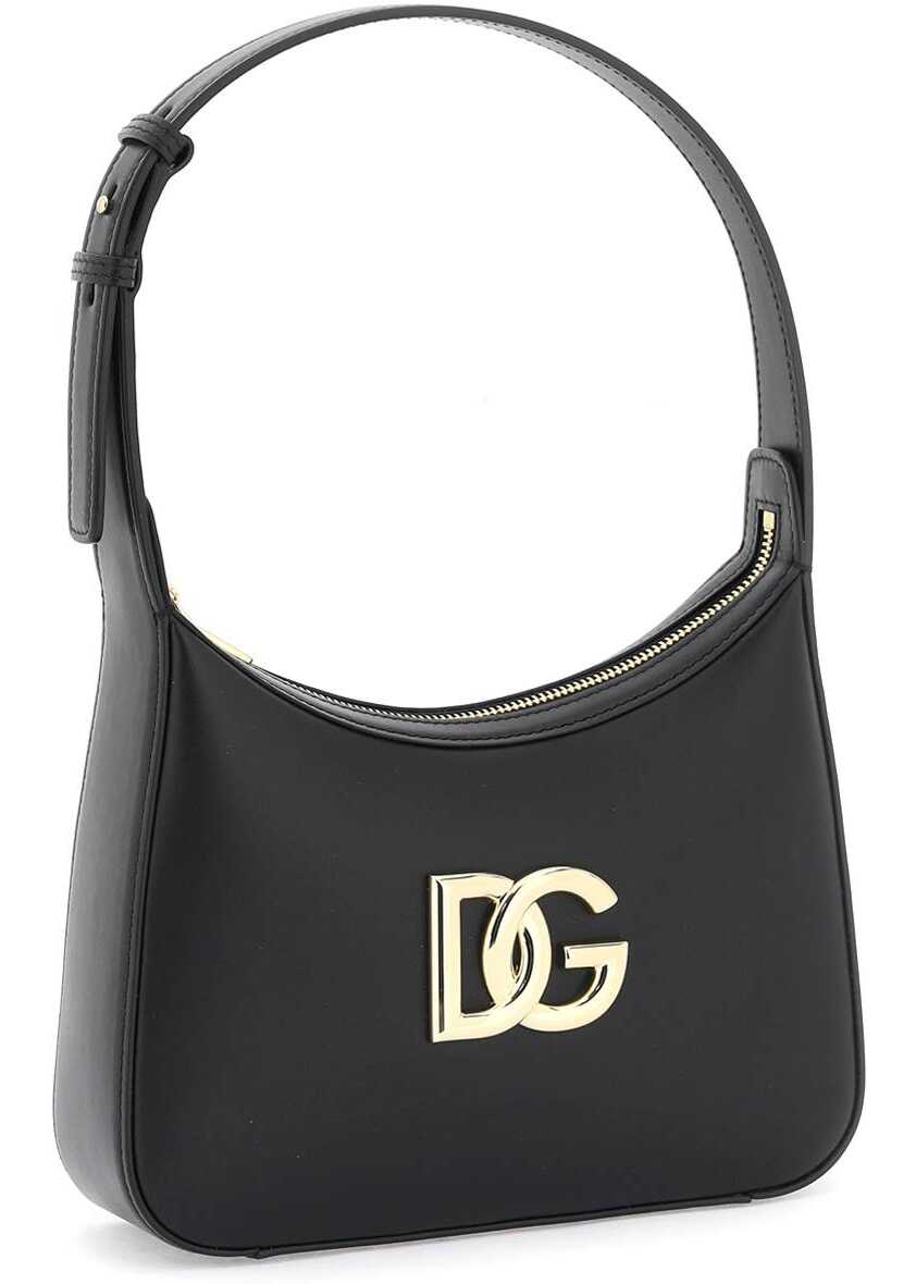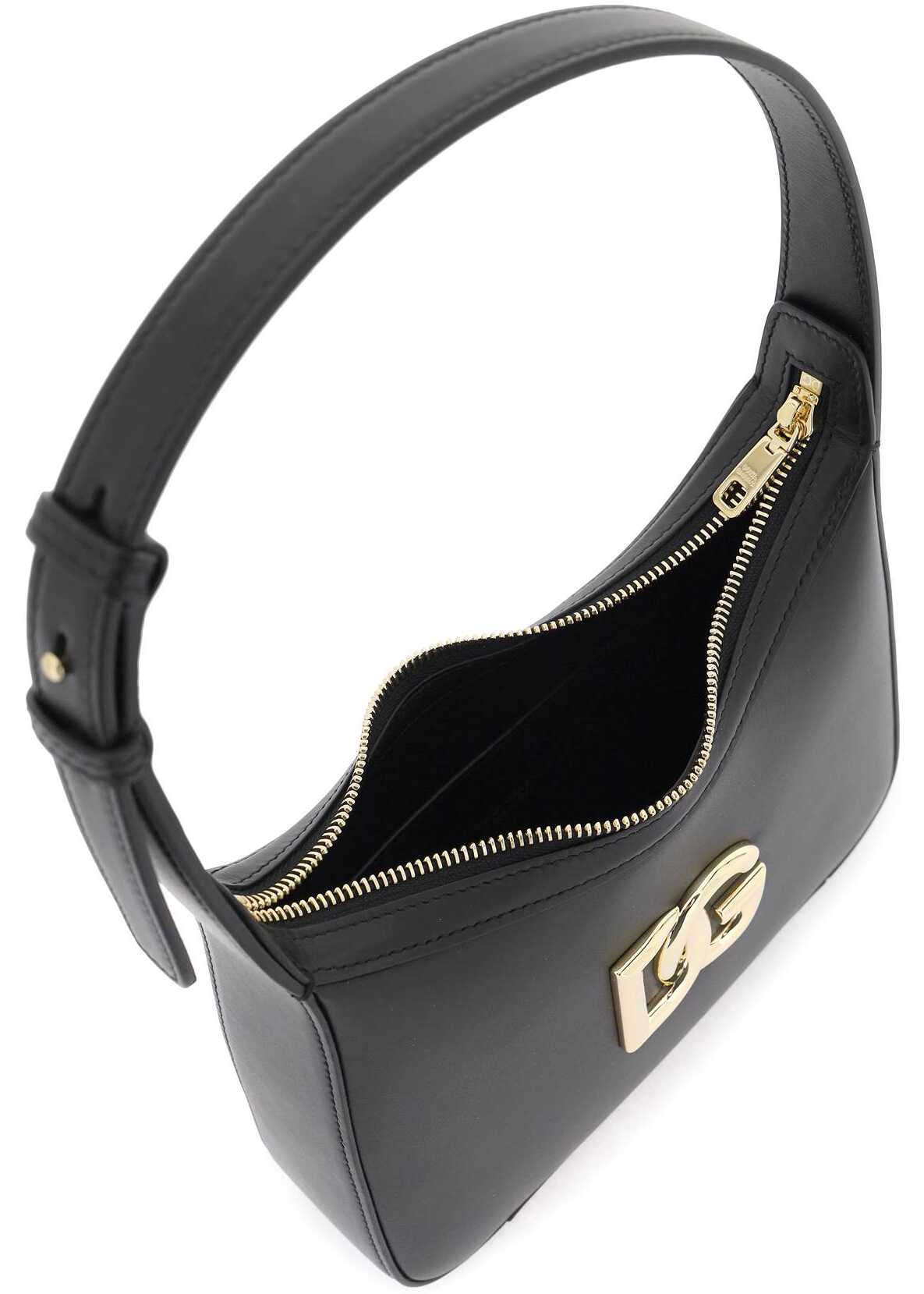 3.5 shoulder bag by Dolce & Gabbana crafted in smooth leather featuring metal DG logo at front. Top zip closure, leather-lined interior with a flat pocket, adjustable single handle. Gold-finished metalware.