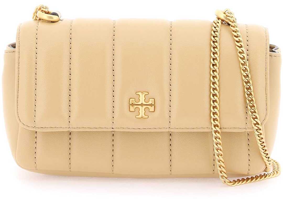 Kira mini bag by Tory Burch in quilted nappa leather, enriched with the iconic metal Double T logo on the flap. Sliding chain strap to carry on the shoulder or crossbody. Magnetic closure, suedette lining and a leather credit card slot. Gold-tone metalware.