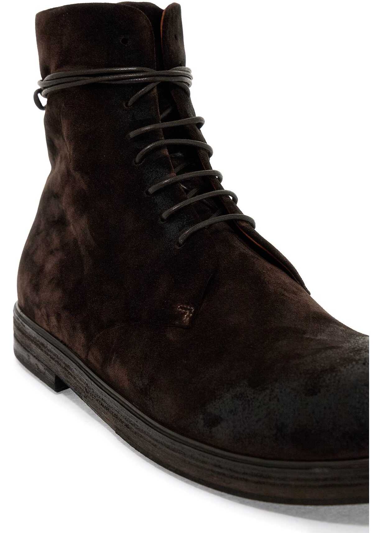 Marsèll's Zucca Zeppa ankle boots are made of suede leather and feature an oversized toe. The interior is lined with leather and the sole is made of a combination of leather and rubber.