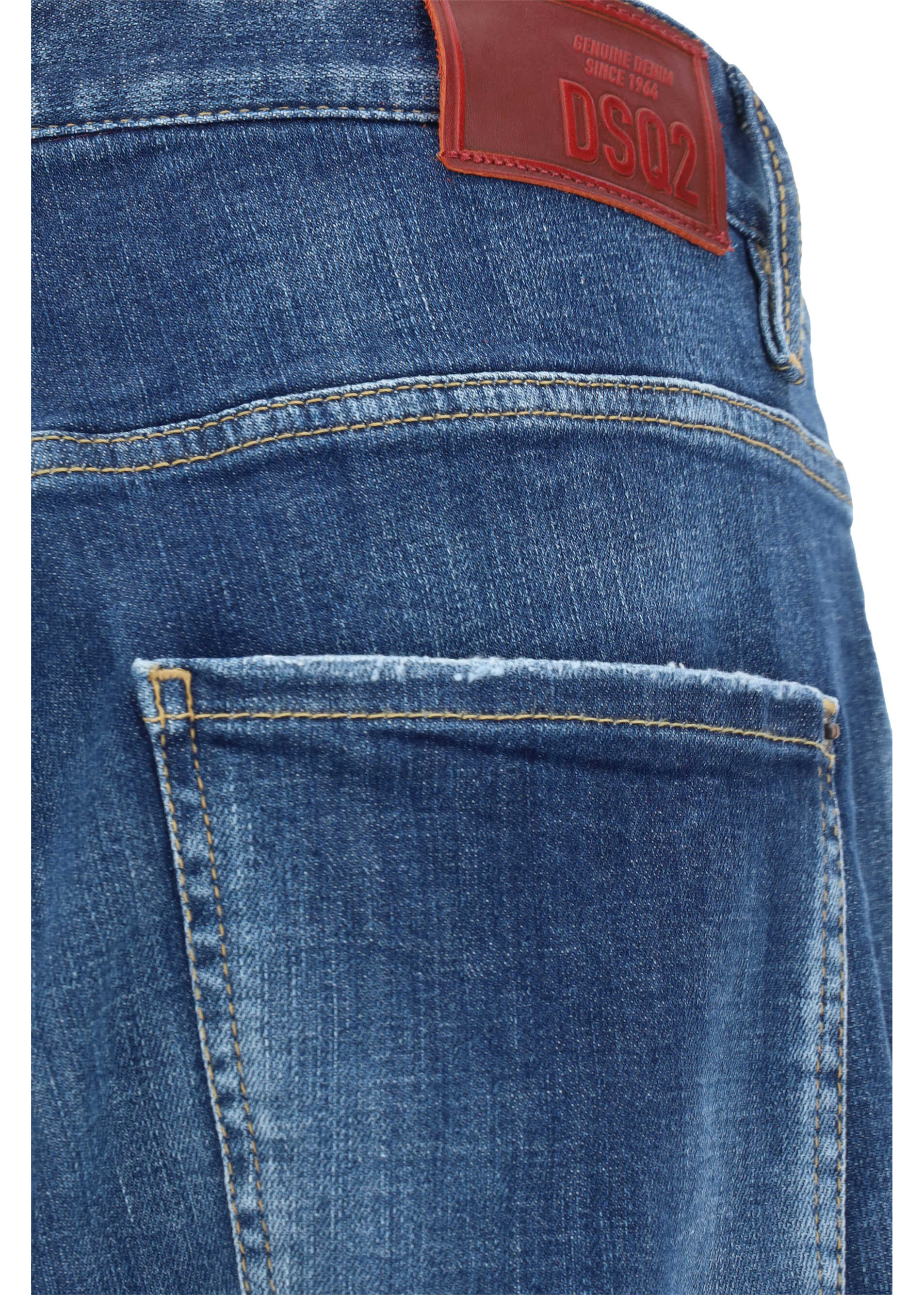 Cotton Jeans by Dsquared2, five-pocket straight style, front button and zipper closure, belt loops for waistband, iconic leather patch with signature brand pressure-printed applique on back.