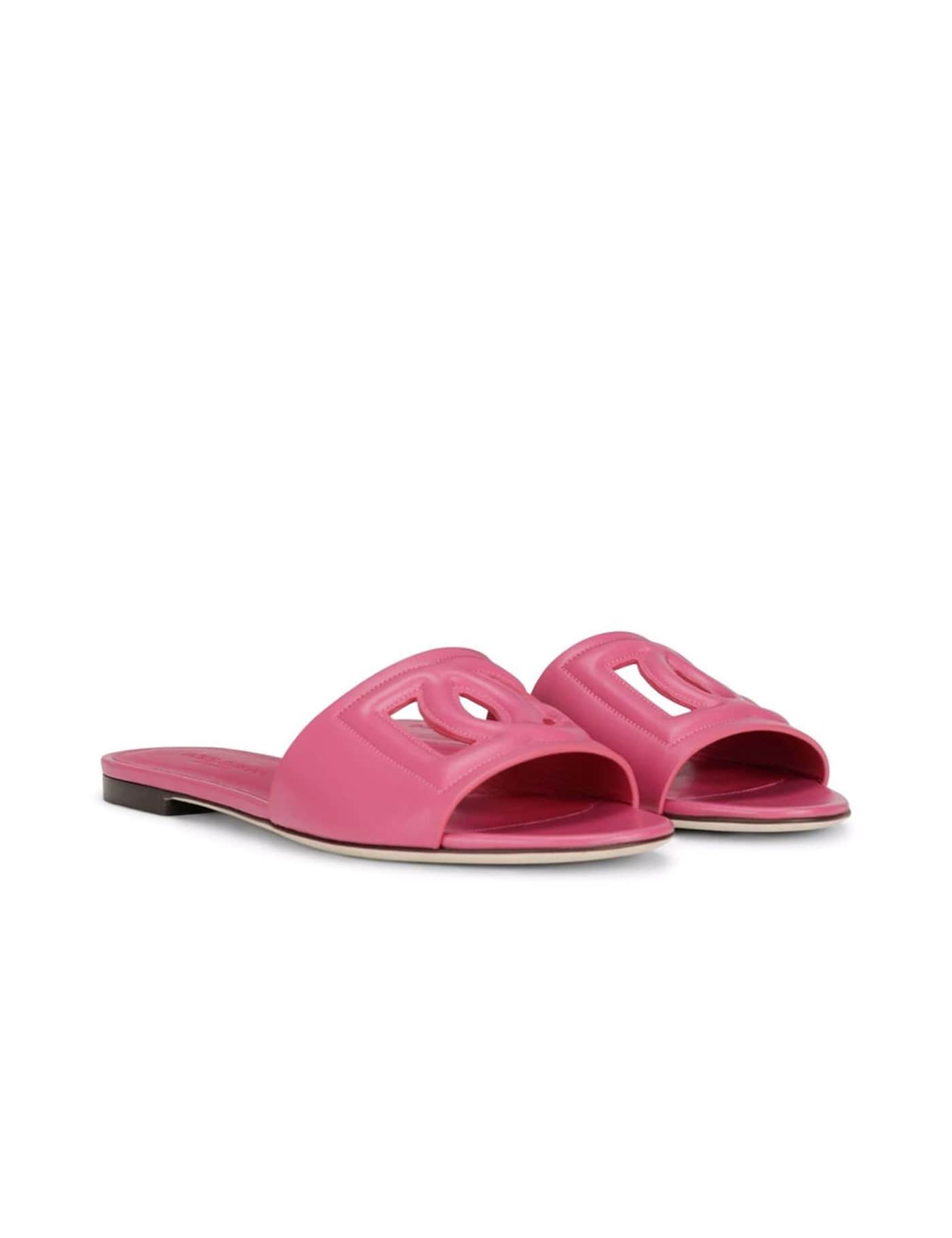 Dolce & Gabbana slides in smooth leather featuring quilted embossed DG logo with cut-out details on the upper. Leather lining and insole, leather sole with rubber inlay on the heel.