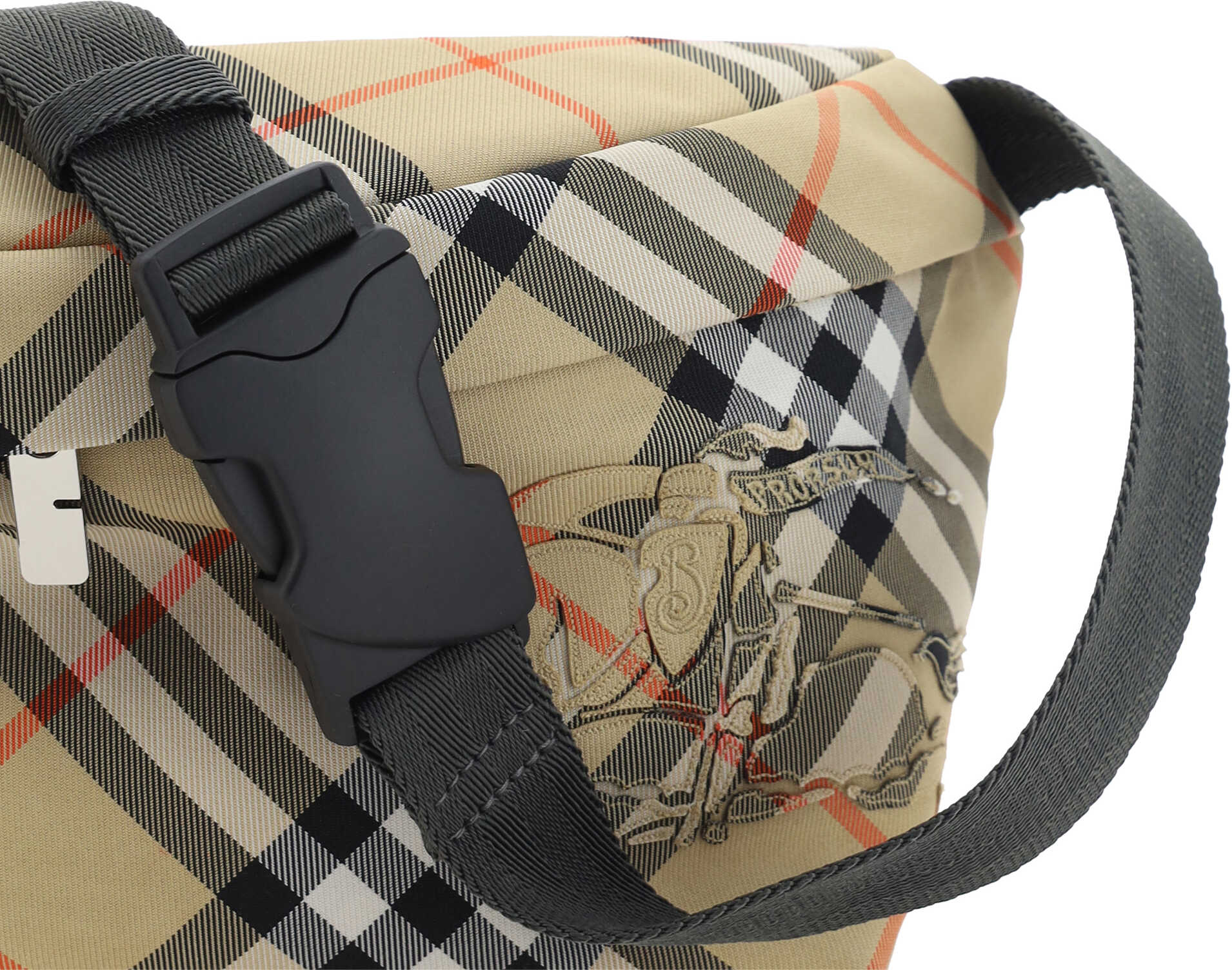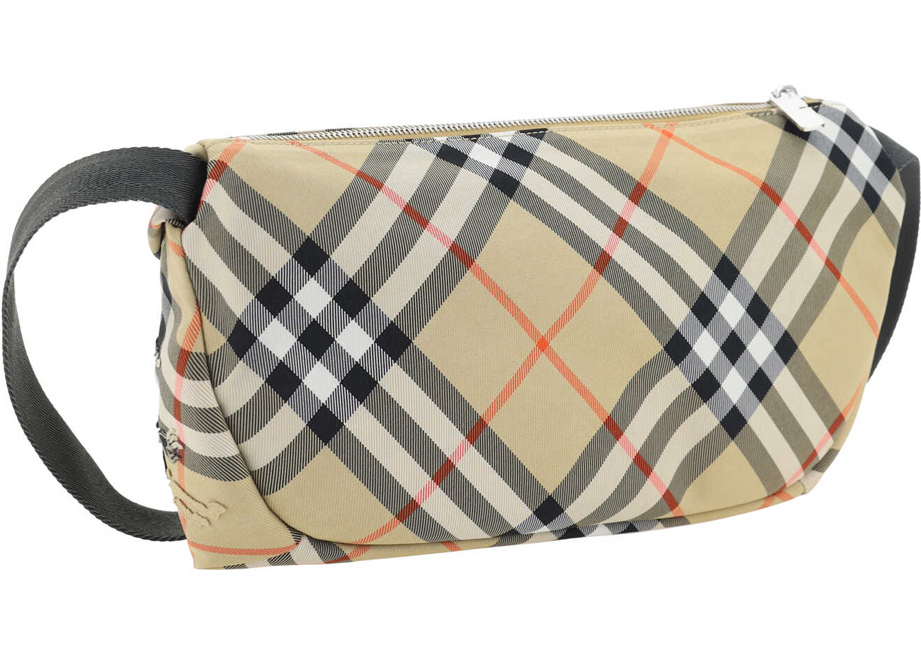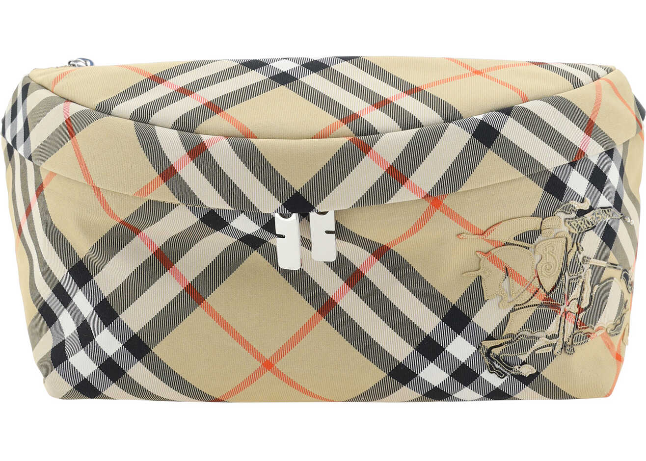Fanny Pack by Burberry, iconic all-over Check pattern, adjustable waistband with clip closure, concealed front zipper closure.