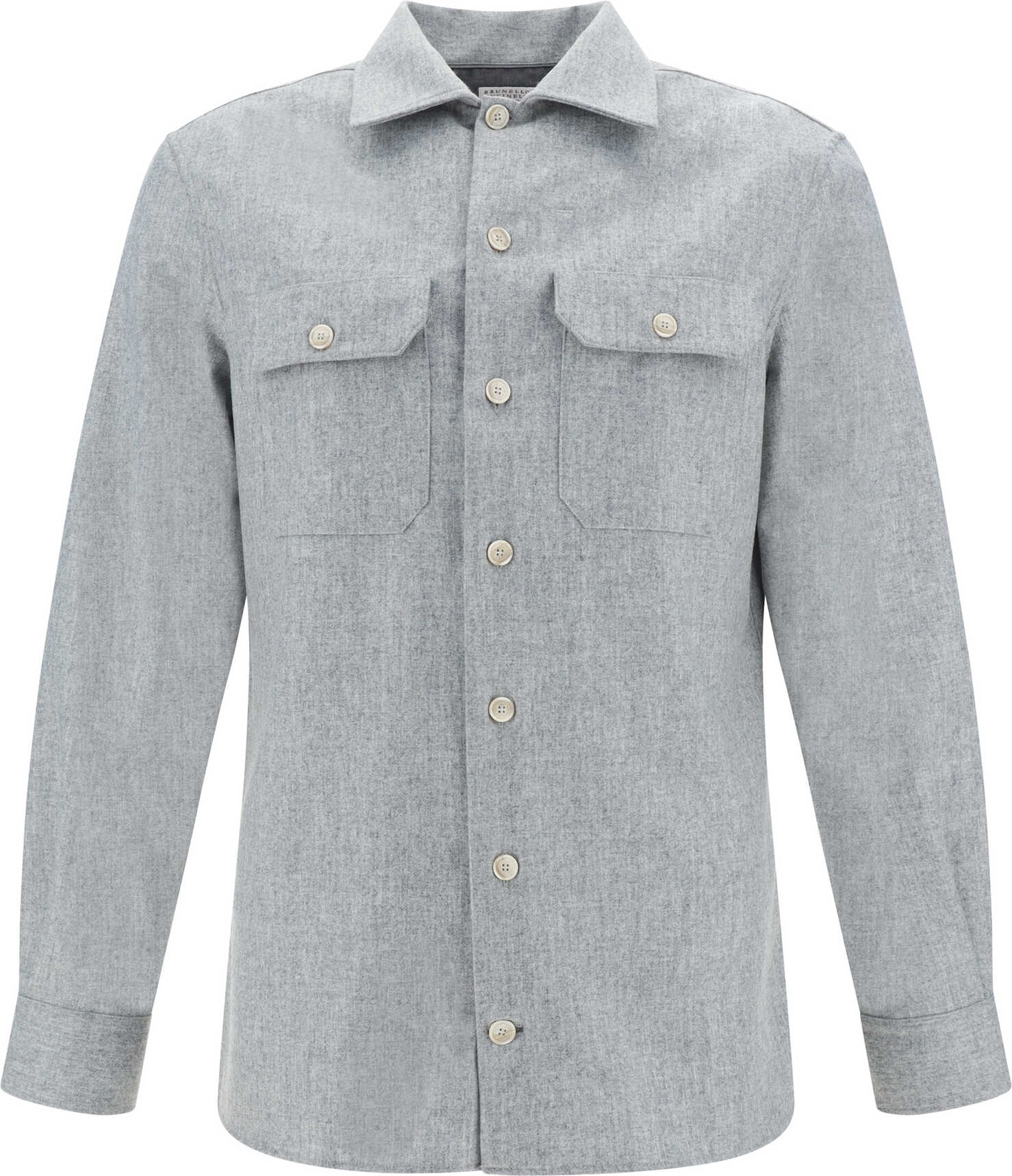 Virgin Wool Shirt by Brunello Cucinelli, featuring classic collar, front button closure, two front patch pockets with flap for closure, adjustable button cuffs, mélange pattern, regular fit.