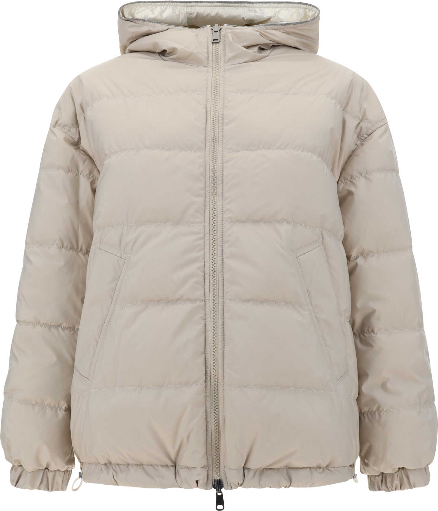 Reversible Down Jacket by Brunello Cucinelli, featuring a hooded design embellished with shiny jewels, front closure by a double-slider zipper, two side welt pockets, elasticated cuffs, adjustable hem by drawstring, all-over quilted and padded design, monochrome pattern, regular fit.