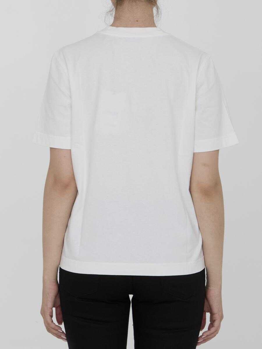 Short-sleeved crewneck t-shirt in white cotton jersey with Equestrian Knight Design and Burberry logo embroidered on the front. Ribbed collar. Regular fit.
