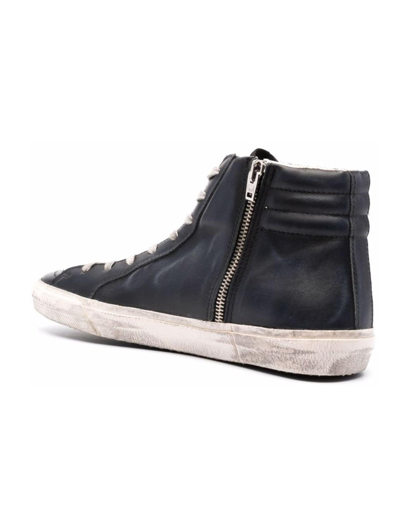 Golden Goose celebrates their Italian heritage with every piece they create. This pair of Classic Slide high-top sneakers have been designed with the brand's signature distressed alongside silver-tone studding, a signature star patch detail and a side zip fastening closure.