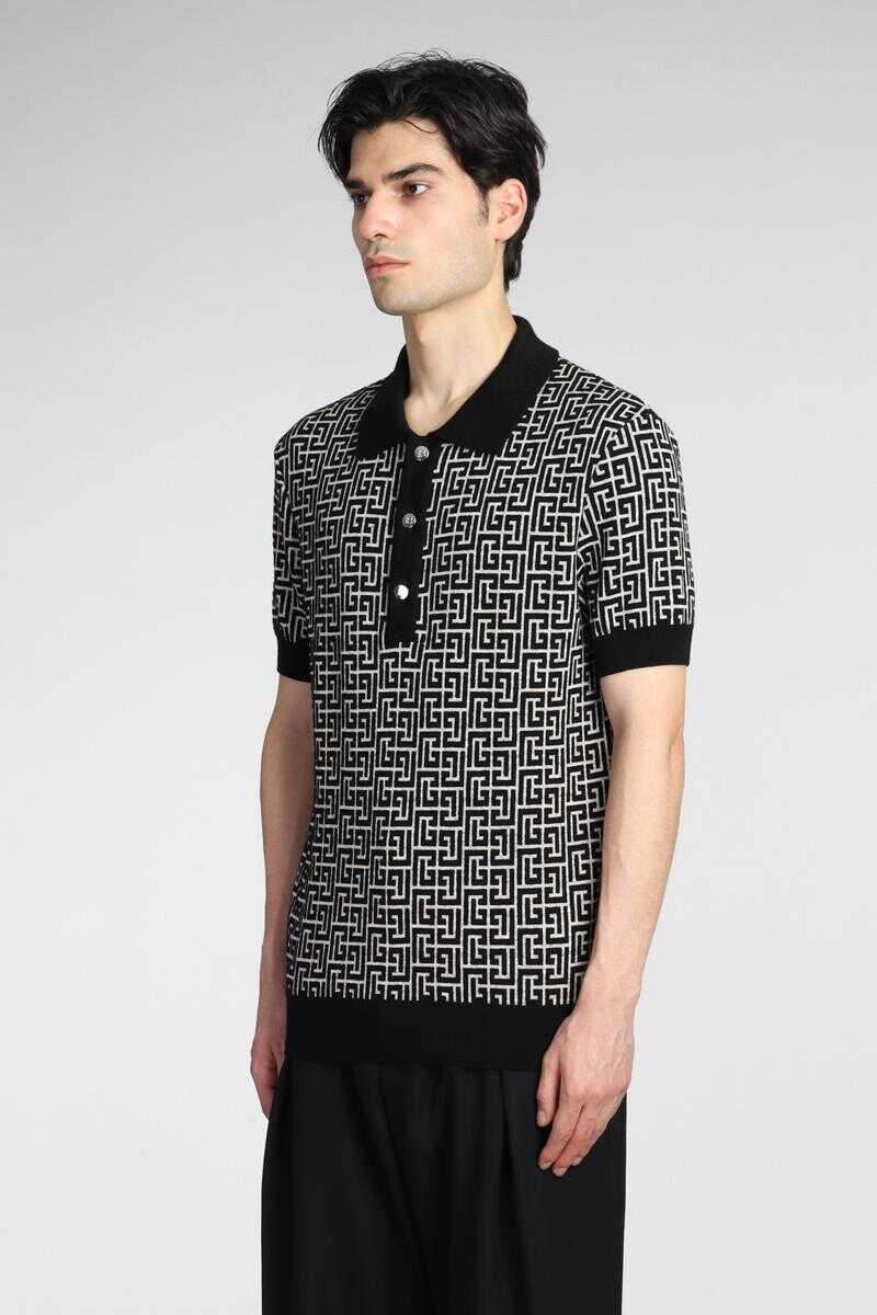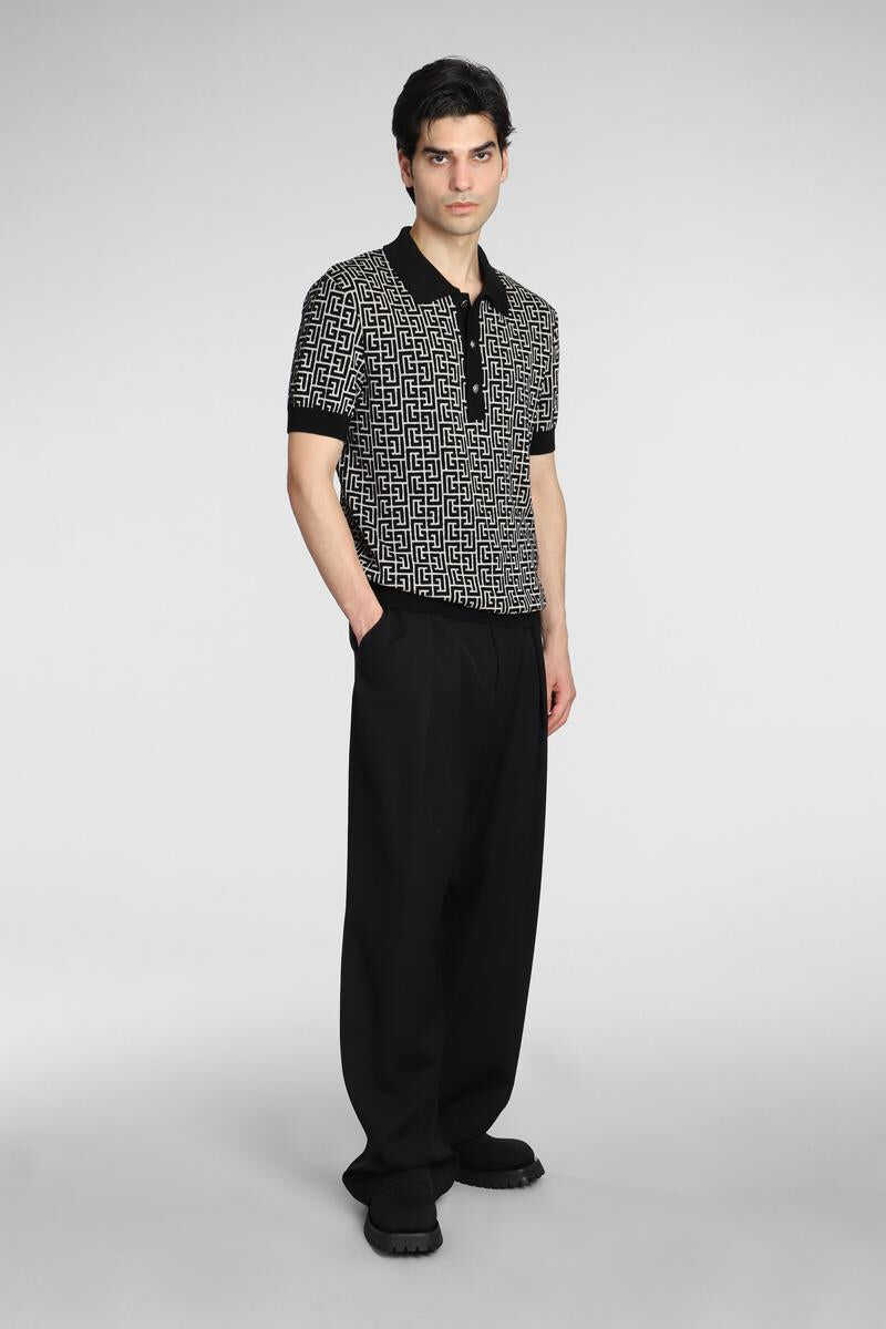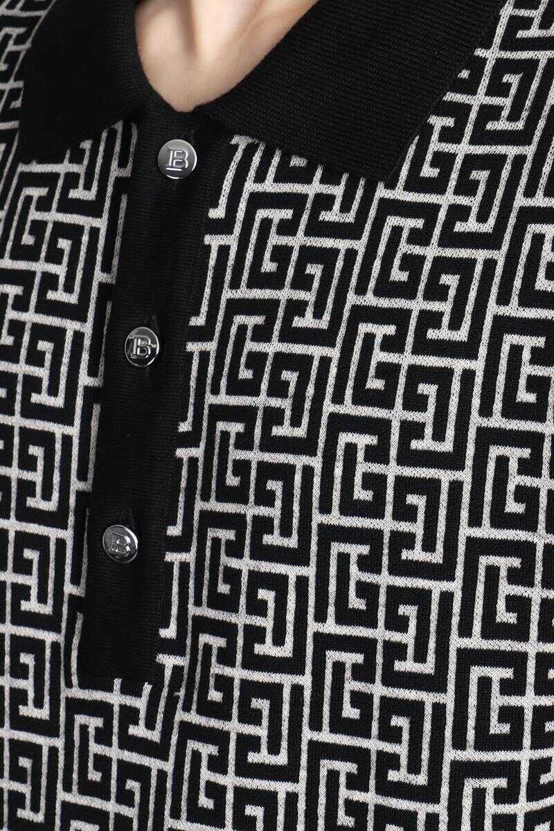Polo in beige wool, collar, short sleeves, straight hem, monogram print, 66% wool, 31% linen, 3% polyamide, Made in France