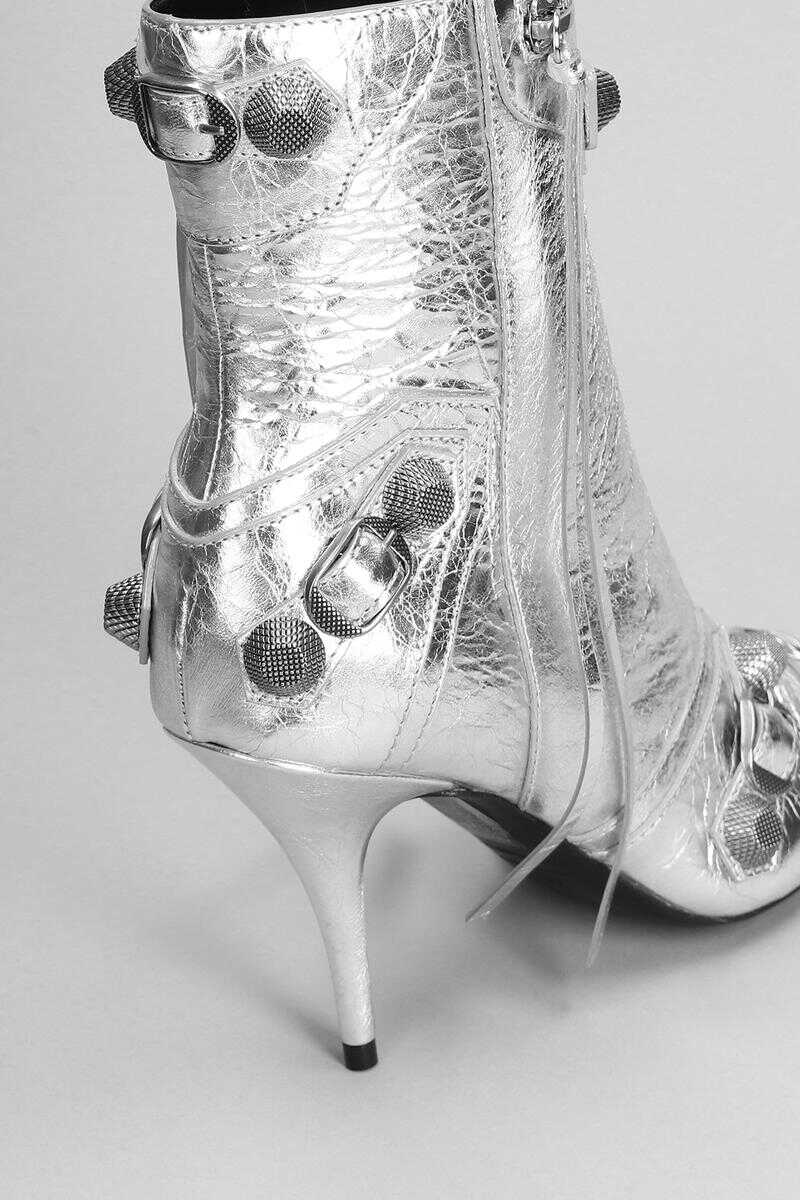 High heels Ankle boots in silver leather, pointed toe, studs detail, side zip closure, front zip closure, silver hardware, leather sole, heel 90 mm, 100% leather, Made in Italy
