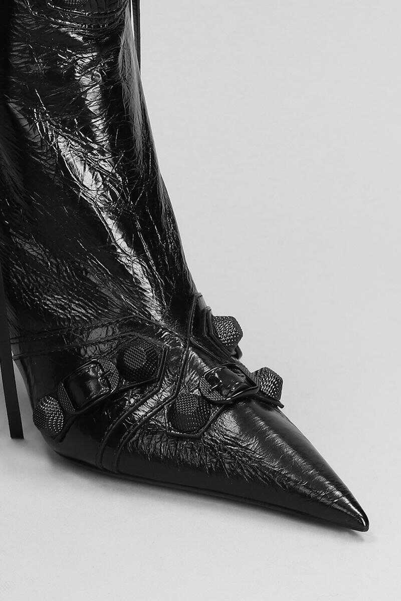Cagole bootie High heels Ankle boots in black leather, pointed toe, buckle strap detail, studs detail, zip clousure, heel 90 mm, leather sole, 100% leather, Made in Italy