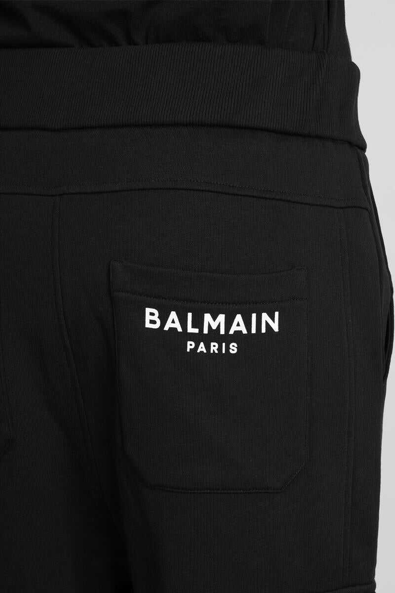 Pants in black cotton, drawstring waist, side pockets, cargo pockets, pockets on backside, logo print back, elastic detail on ankle, 100% cotton, Made in Portugal