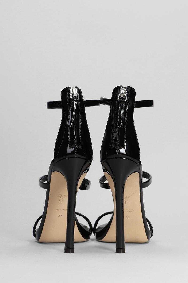 Harmony Sandals in black patent leather, three band, back zip, leather sole, heel 120 mm , patent leather, Made in Italy