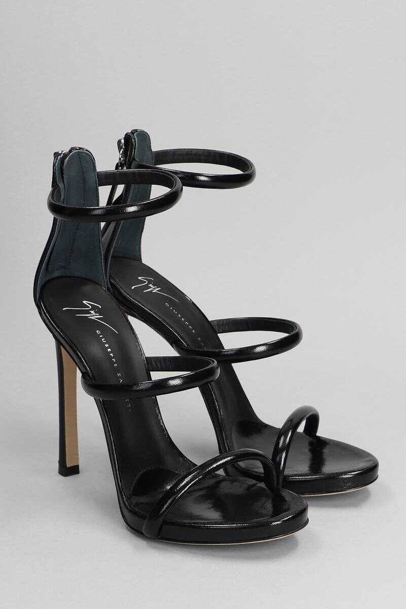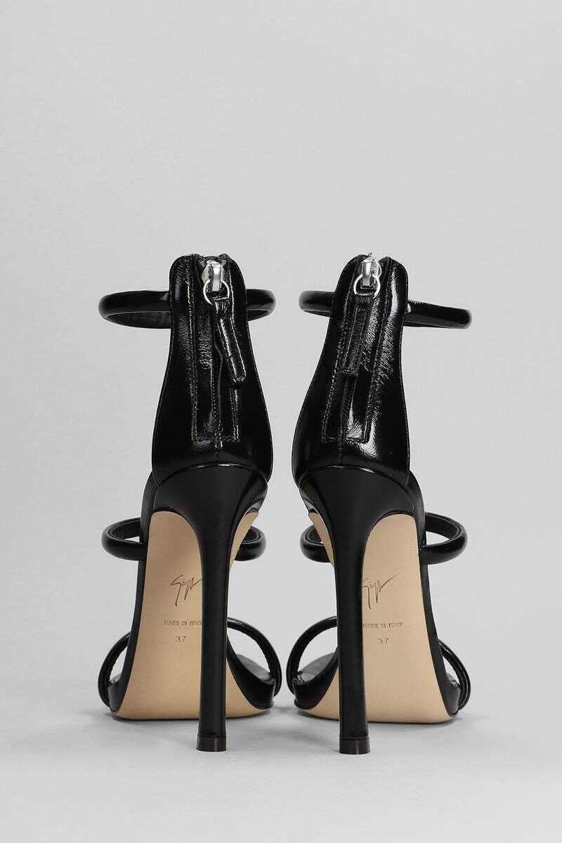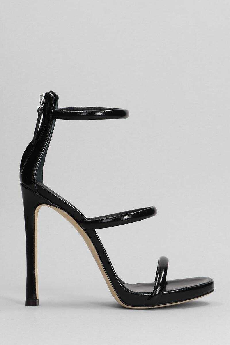 Harmony Sandals in black patent leather, three band, back zip, 120 mm heel, leather sole, patent leather, Made in Italy