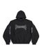 Sweatshirt in black cotton, hood, long sleeves, kangaroo pockets, print on sleeves, print on front, back print