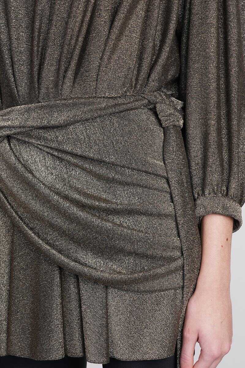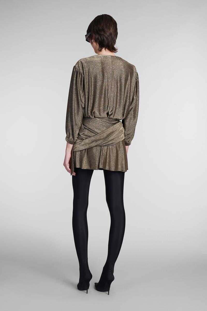 Dress in gold viscose, V neck, zip clousure, draped, 70% polyamide, 26% metallised fibers, 4% Polyester, Made in Italy