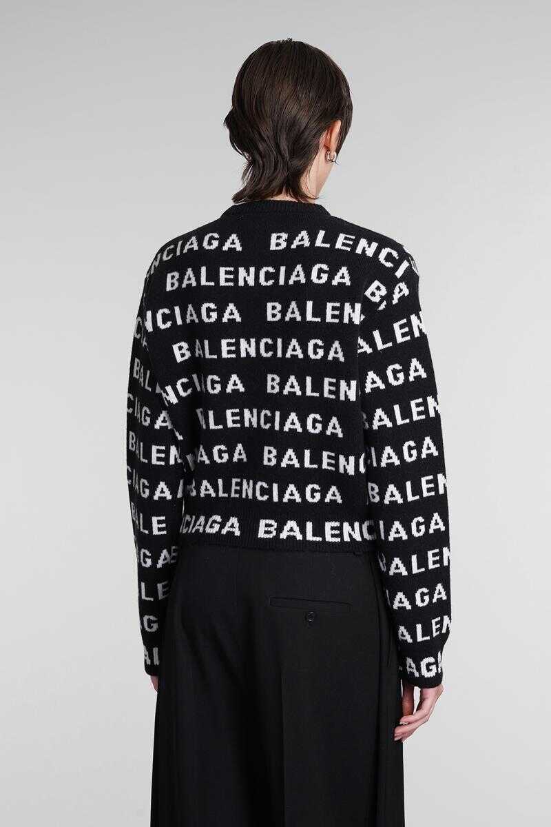 Knitwear in black wool, round neck, long sleeves, all over embroidery logo, ribbed cuffs and bottom, 98% wool, 2% nylon
