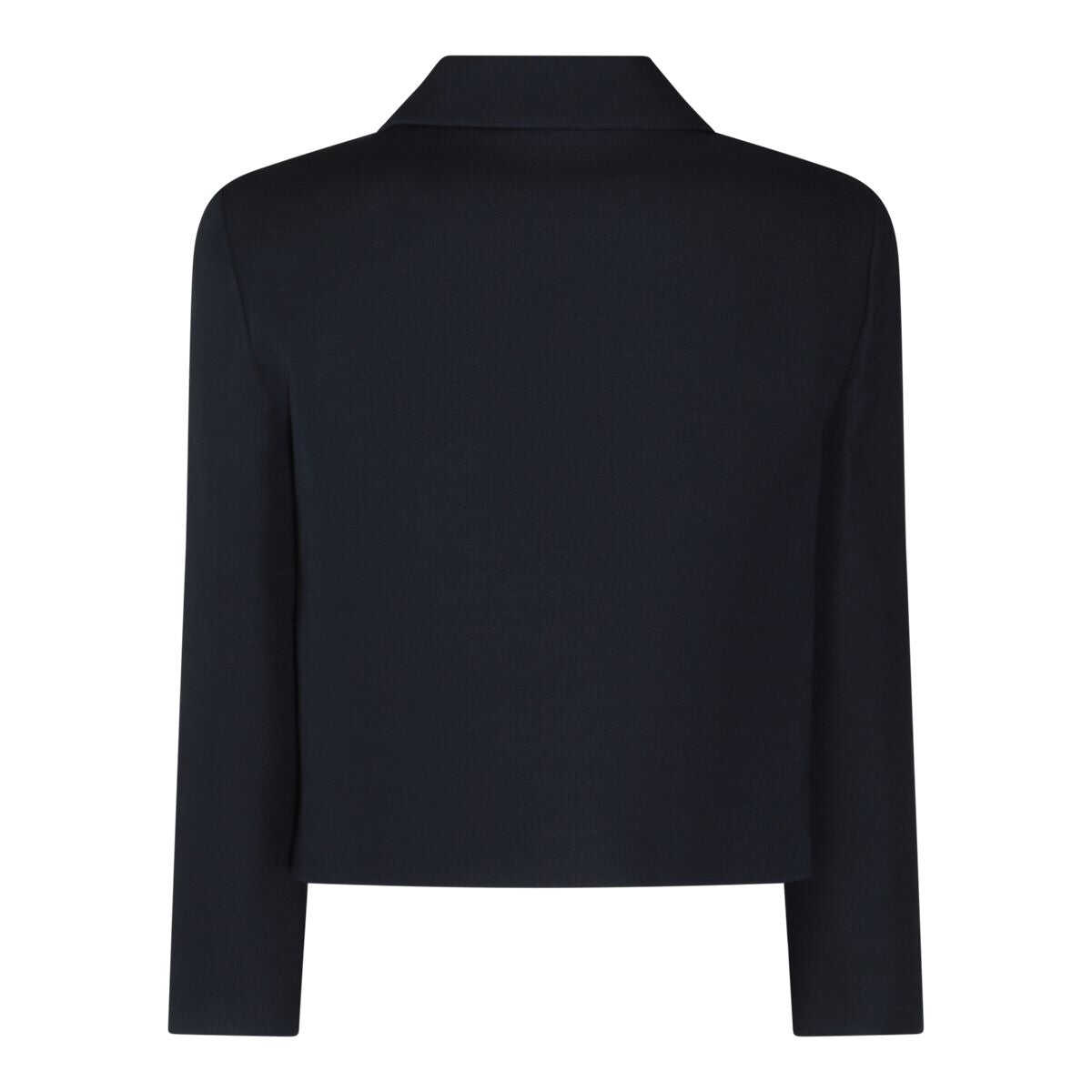 Navy blue wool blazer from Valentino featuring long sleeves, frontal logo, pockets and regular vestibility.