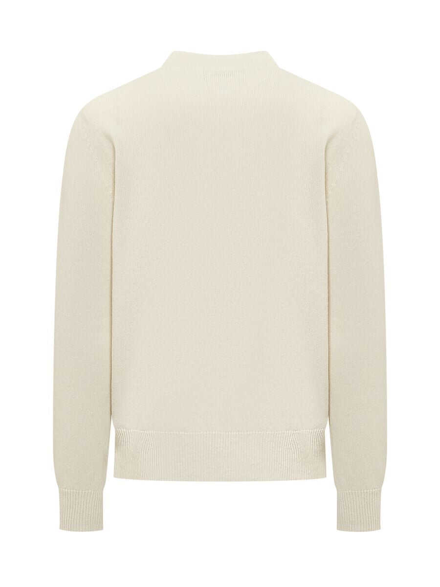Wool-blend long-sleeved sweater. Crew neck. Ribbed hems. Embroidered logo on front.