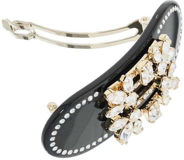 The Roger Vivier hair clip is made of cellulose acetate and adorned with micro crystals along the edges, featuring the iconic Broche Vivier buckle in crystals. This elegant accessory is inspired by the beautiful gardens of the Palace of Versailles.