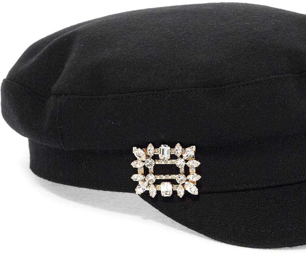 This sailor hat with visor by Roger Vivier is made of wool felt and embellished with the iconic Broche buckle adorned with crystals. The interior is lined with wool for added warmth and comfort. The item in the photo corresponds to size S.