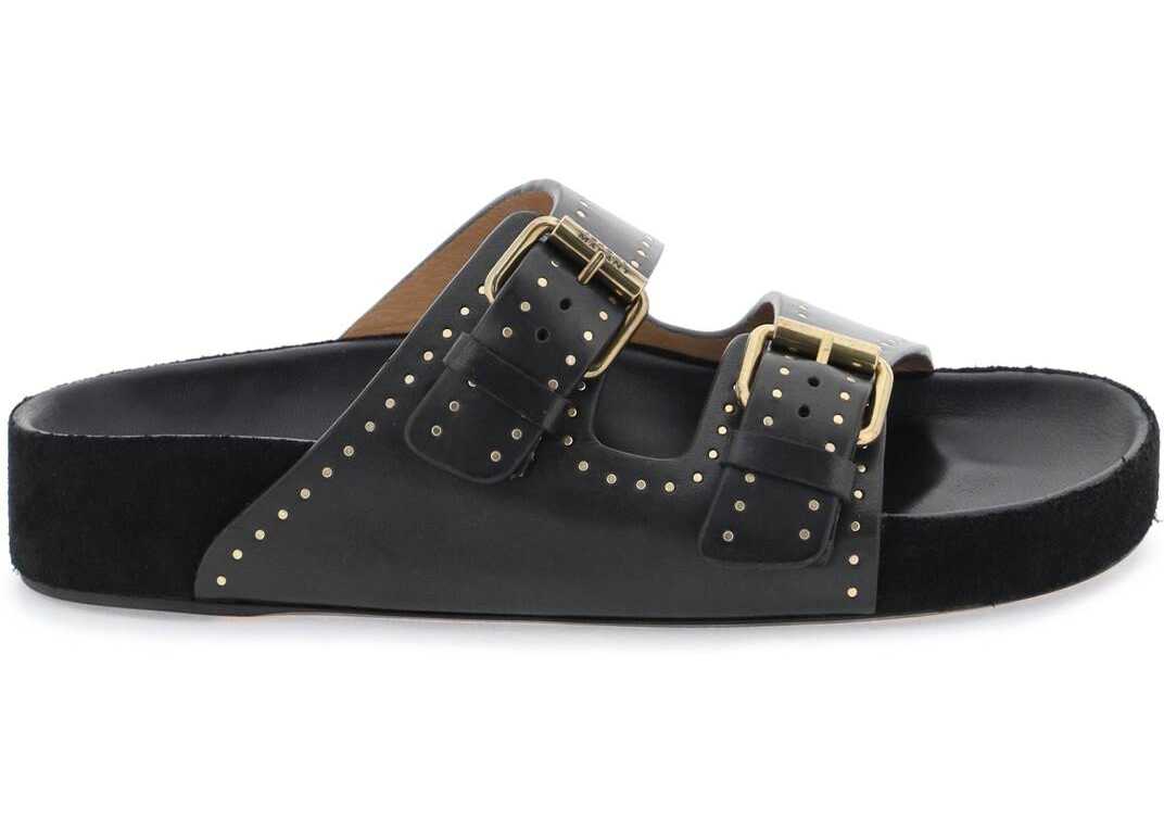 Isabel Marant slides made of leather with double adjustable strap and embellished with micro studs applied on the trim. Anatomical leather footbed and leather sole with rubber inlay.