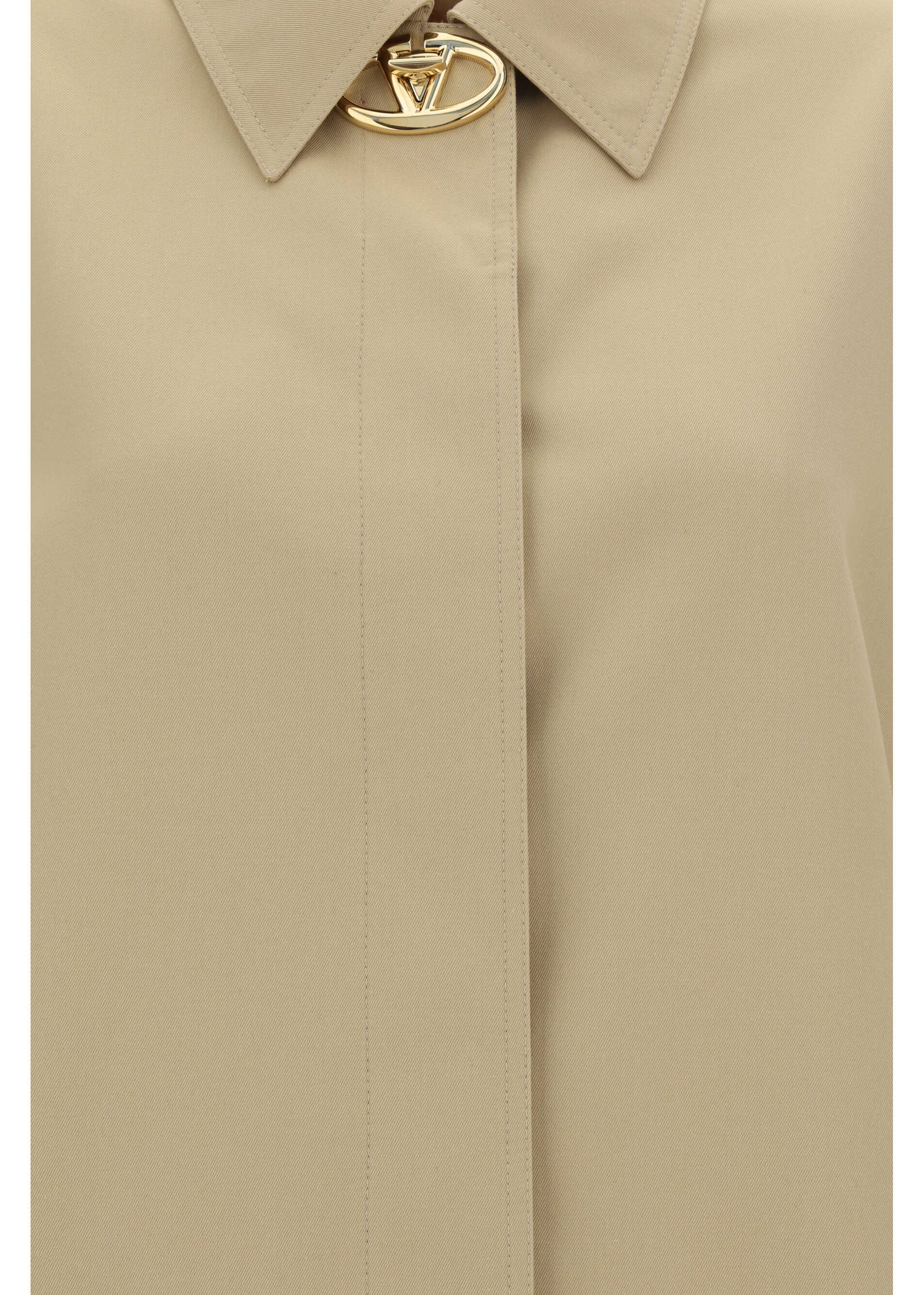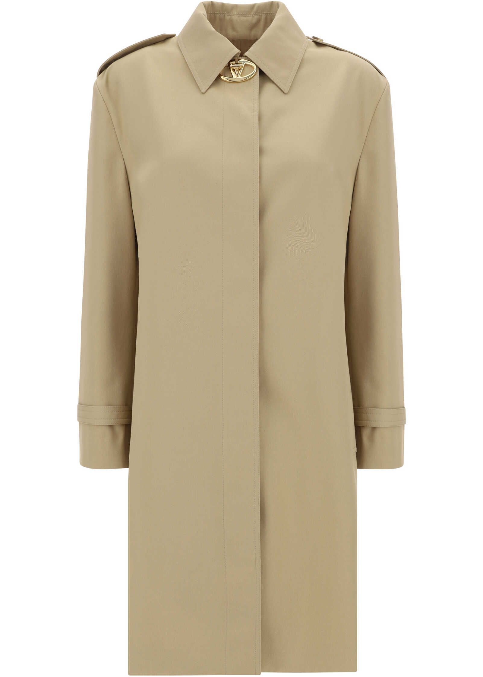 Coat by Valentino, classic collar, front closure by concealed buttons, branded iconic VLogo swivel button applique on front, two side welt pockets, back slit, monochrome pattern, regular fit.