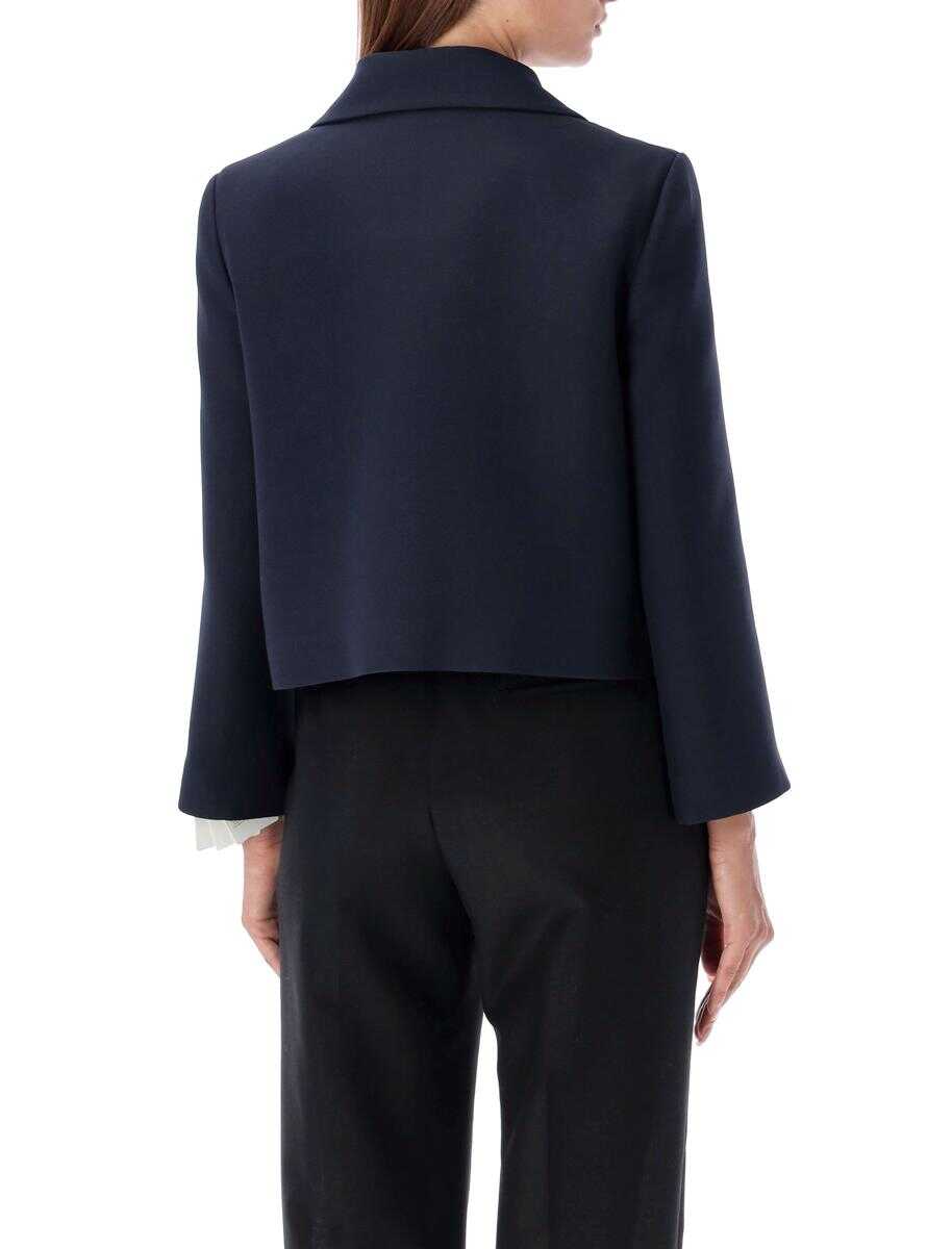 Short V Logo jacket by Valentino. Featuring: Tailored fit Smooth, structured fabric Notched lapel collar Long sleeves Front logo-embellished single button closure Cropped length Two front flap pockets Model is 1,72 and wears size 40.