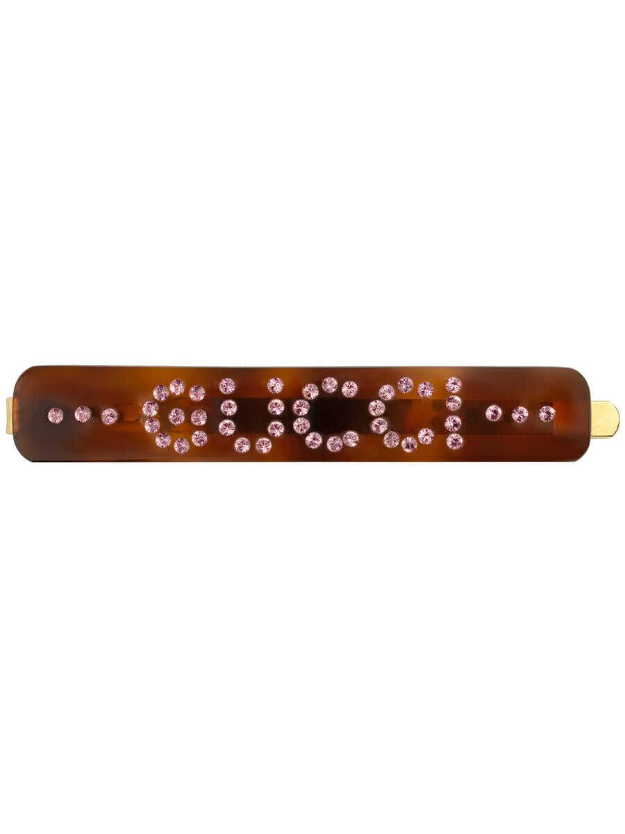 Gucci presents this hair clip made of tortoiseshell resin with crystals.