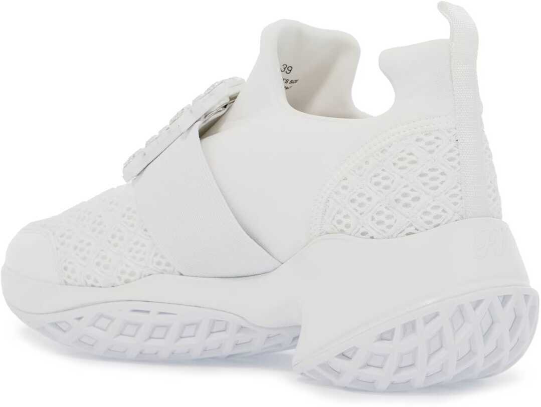 Roger Vivier Viv Run slip-on sneakers crafted in neoprene and mesh technical fabric with front elastic band featuring the iconic crystal-embellished buckle. Leather insert on the toe, rear loop tab, leather and fabric lining, removable insole, rubber sole with embossed logo on the heel and rubber "mesh" base.