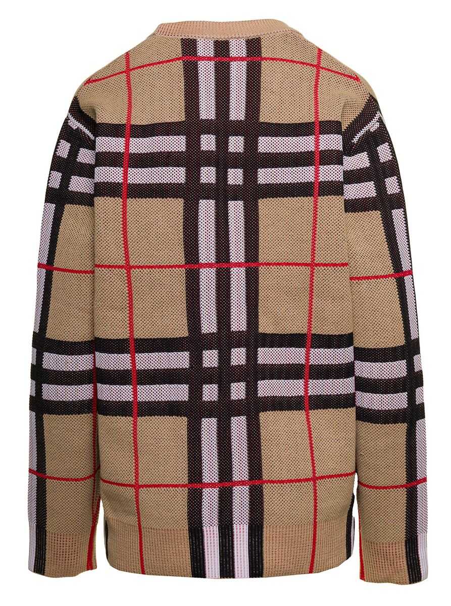 Vintage Check V-neck cardigan from BURBERRY featuring archive beige, multicolour, stretch-design, knitted construction, Vintage Check pattern, V-neck, front button fastening, long sleeves and straight hem.