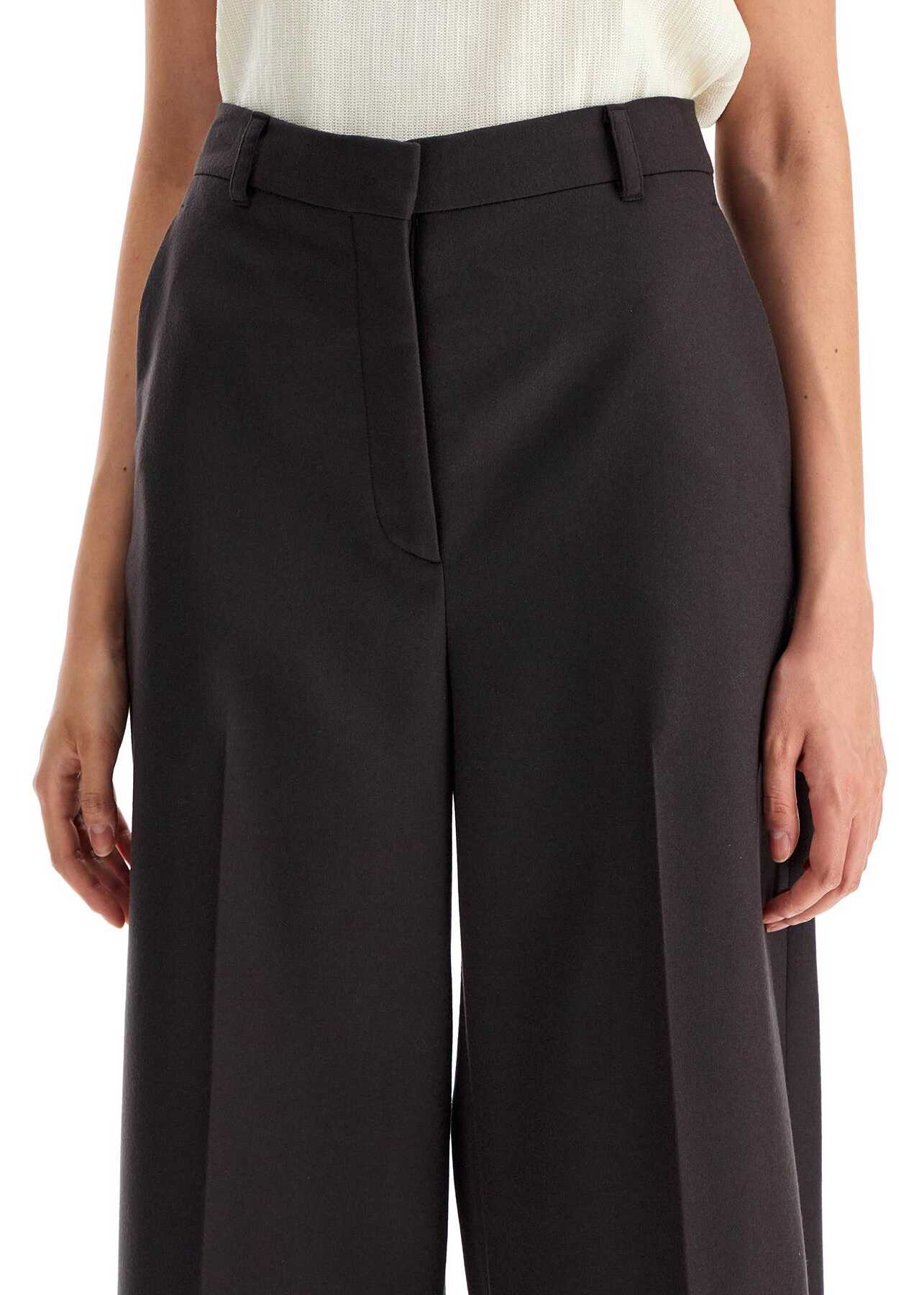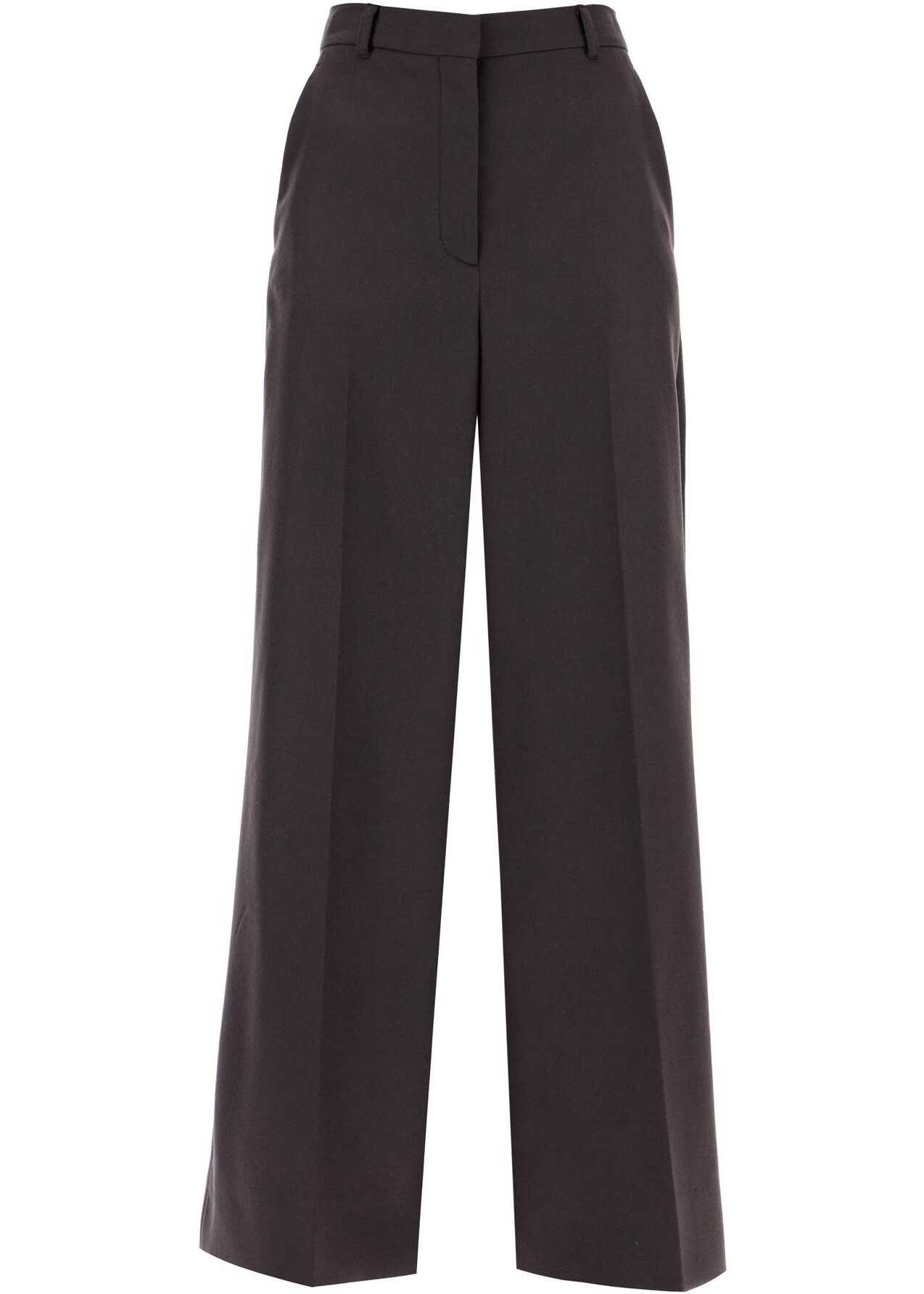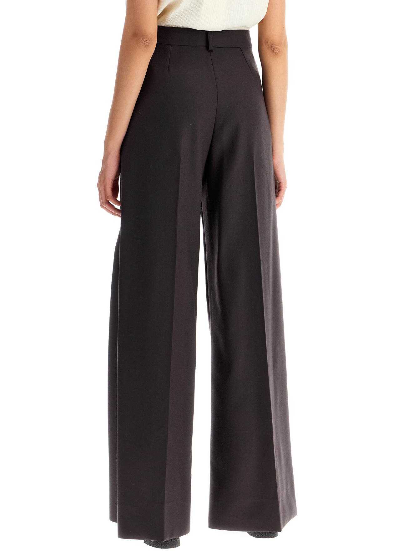 High-waisted Stella McCartney pants with a wide and flared fit. Made of sustainable wool flannel, they are finished with pressed pleats and belt loops, as well as two slanted side pockets. Front closure with zip and hidden hooks. The model is 177 cm tall and wears size IT 40.