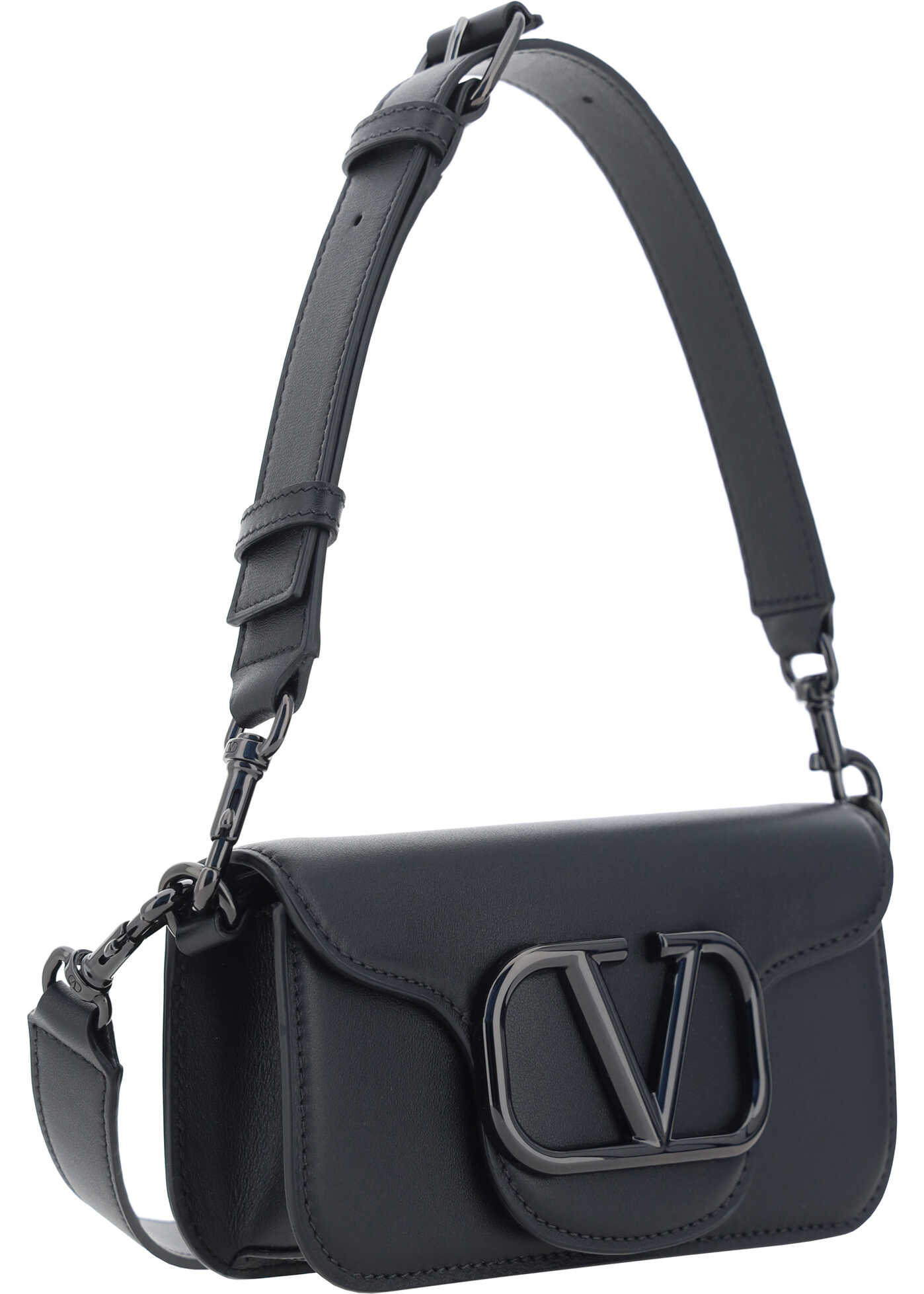 Calfskin Loco Mini Shoulder Bag by Valentino Garavani, smooth leather design, a front magnetic flap closure, the brand's iconic embossed VL logo on the front, a removable and adjustable leather shoulder strap, and an internal welt pocket.