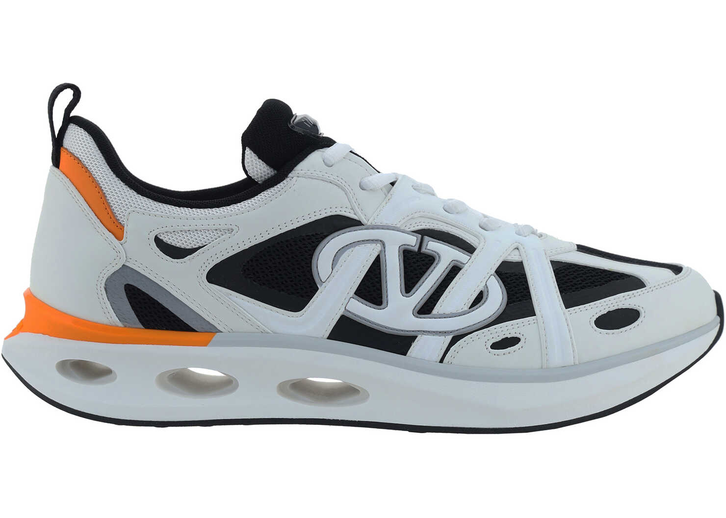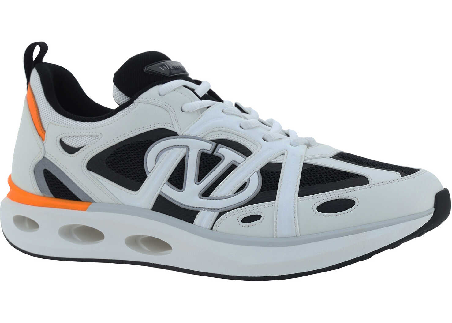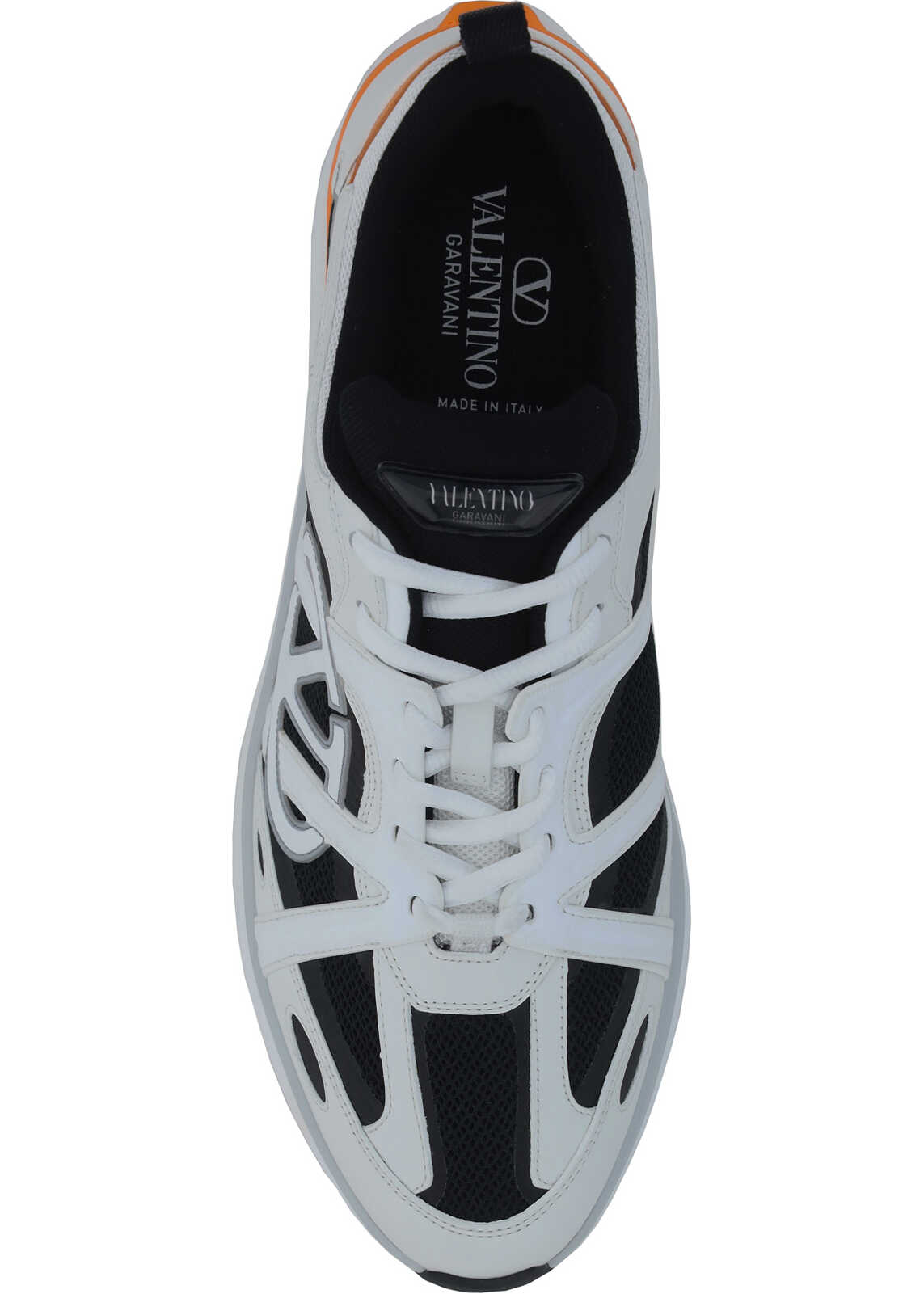 VLogo Easyjog Sneakers by Valentino Garavani, elongated toe, iconic three-dimensional logo appliqué on side panels, textured sole with cut-out inserts, front lace-up closure, heel pull for easy fit.