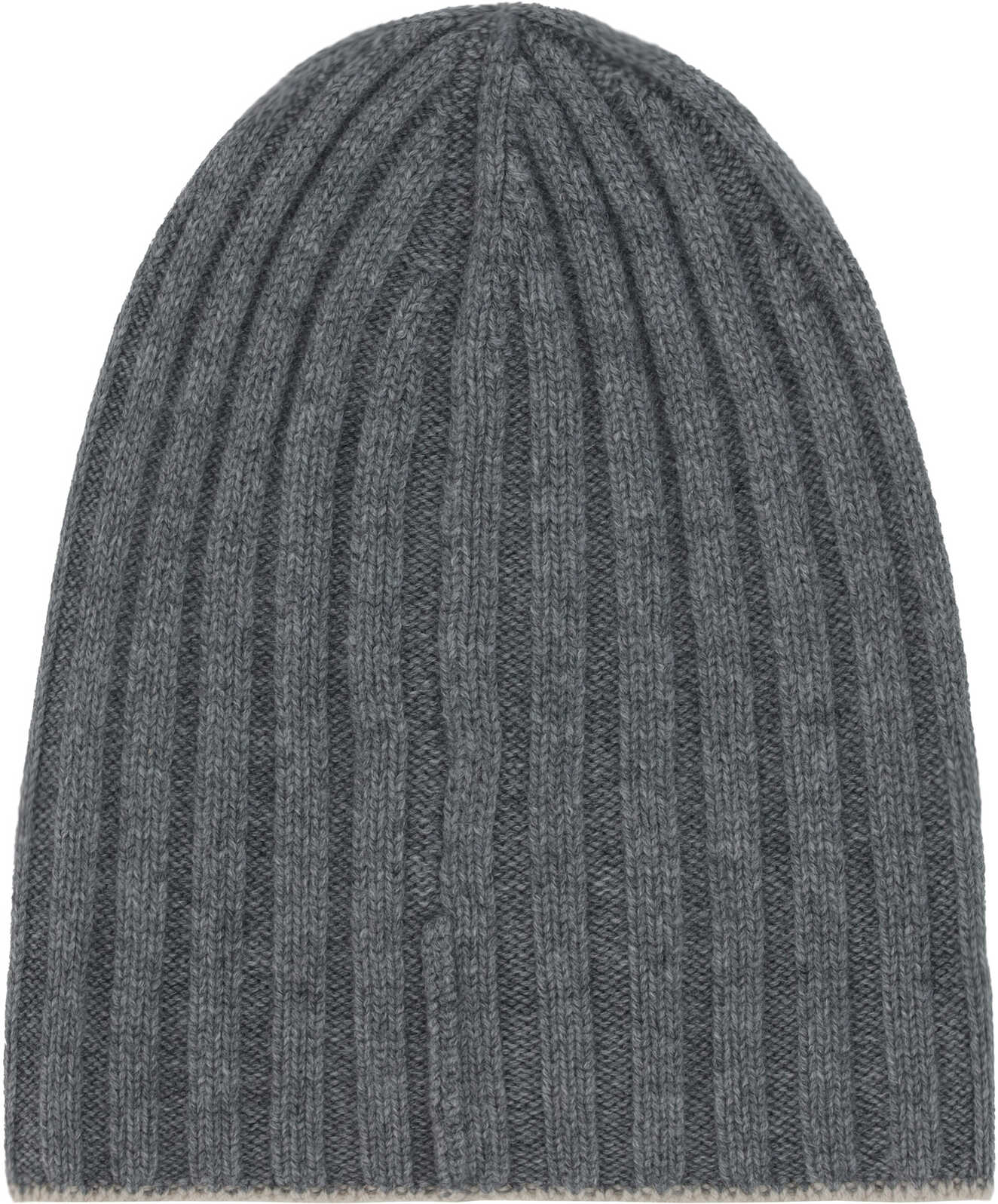 Cashmere Beanie Hat by Brunello Cucinelli, ribbed design, monochrome pattern, contrasting piping.