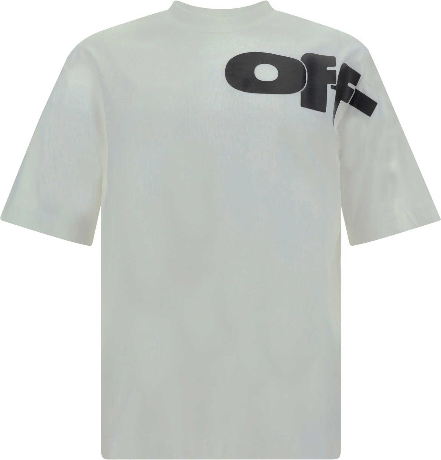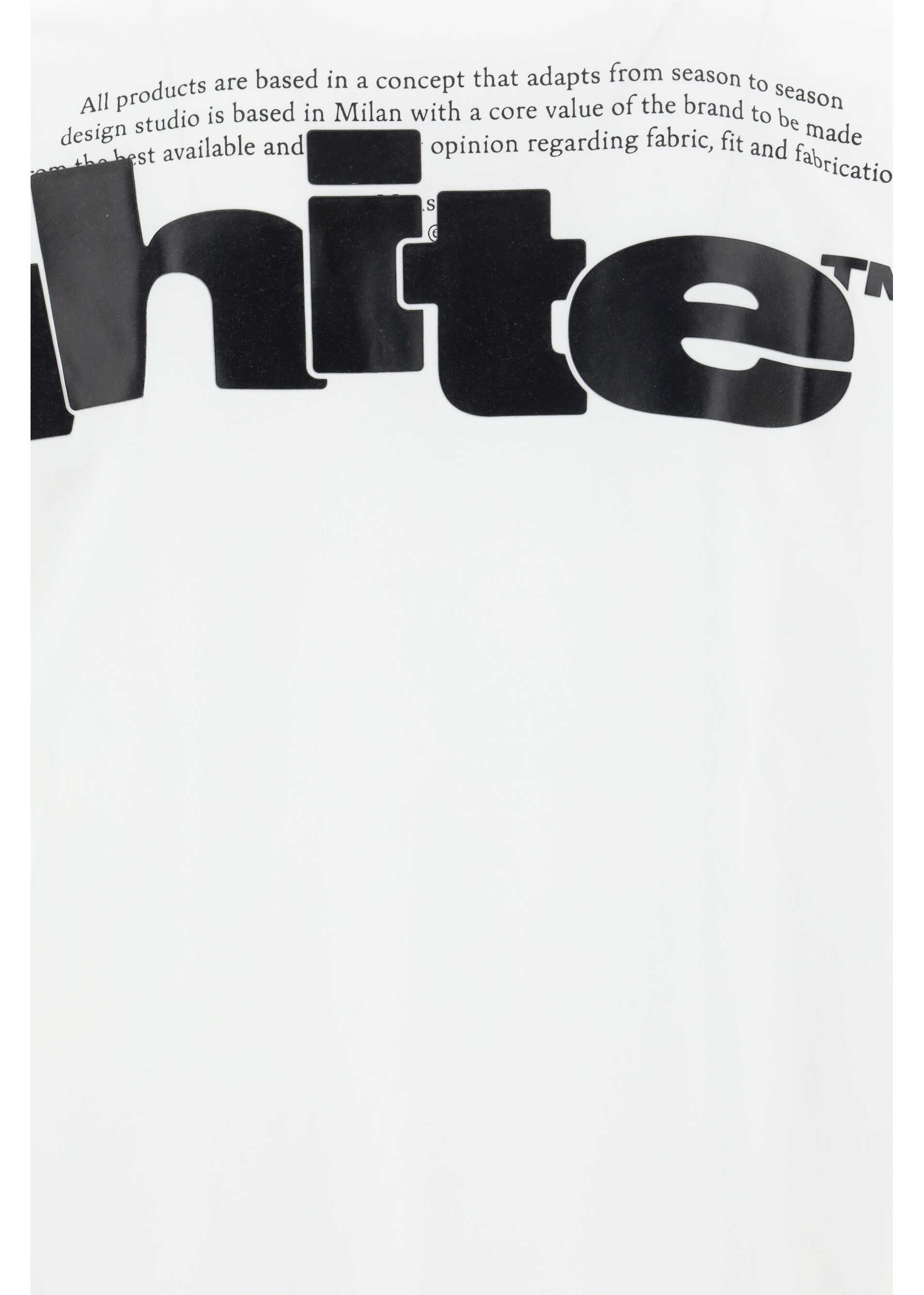 Cotton T-Shirt by Off-White, ribbed crew neck, contrasting iconic brand monogram on front and back, monochrome pattern, regular fit.
