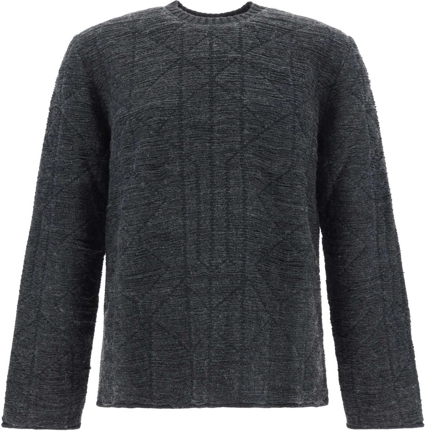 Virgin Wool Sweater by MM6, ribbed crew neck, straight hem, geometric design, monochrome pattern, regular fit.