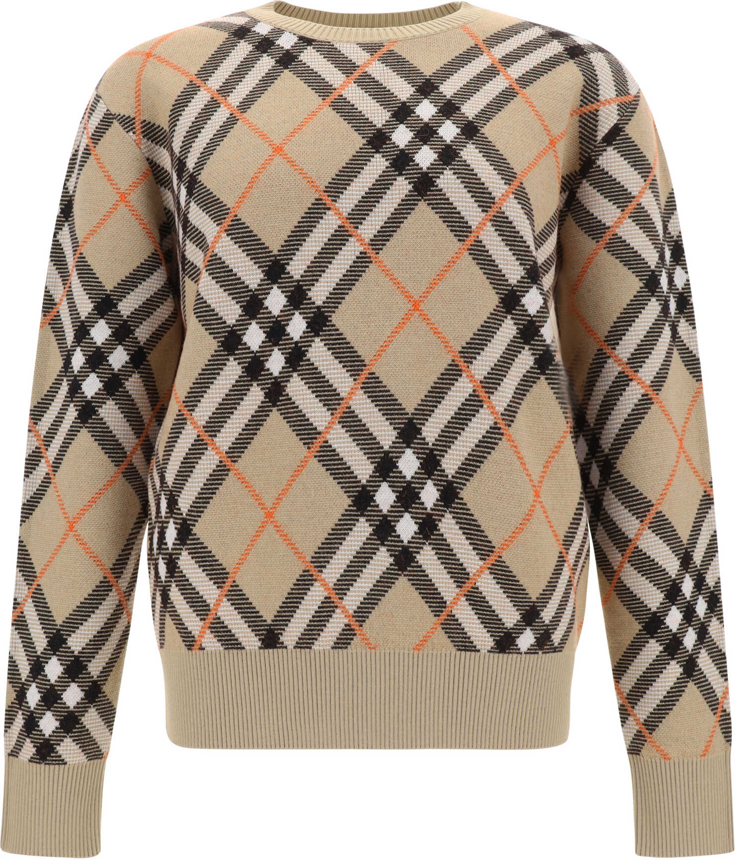 Wool Sweater by Burberry features ribbed crew neck, ribbed hem, ribbed cuffs, iconic all-over applied Check pattern, regular fit.