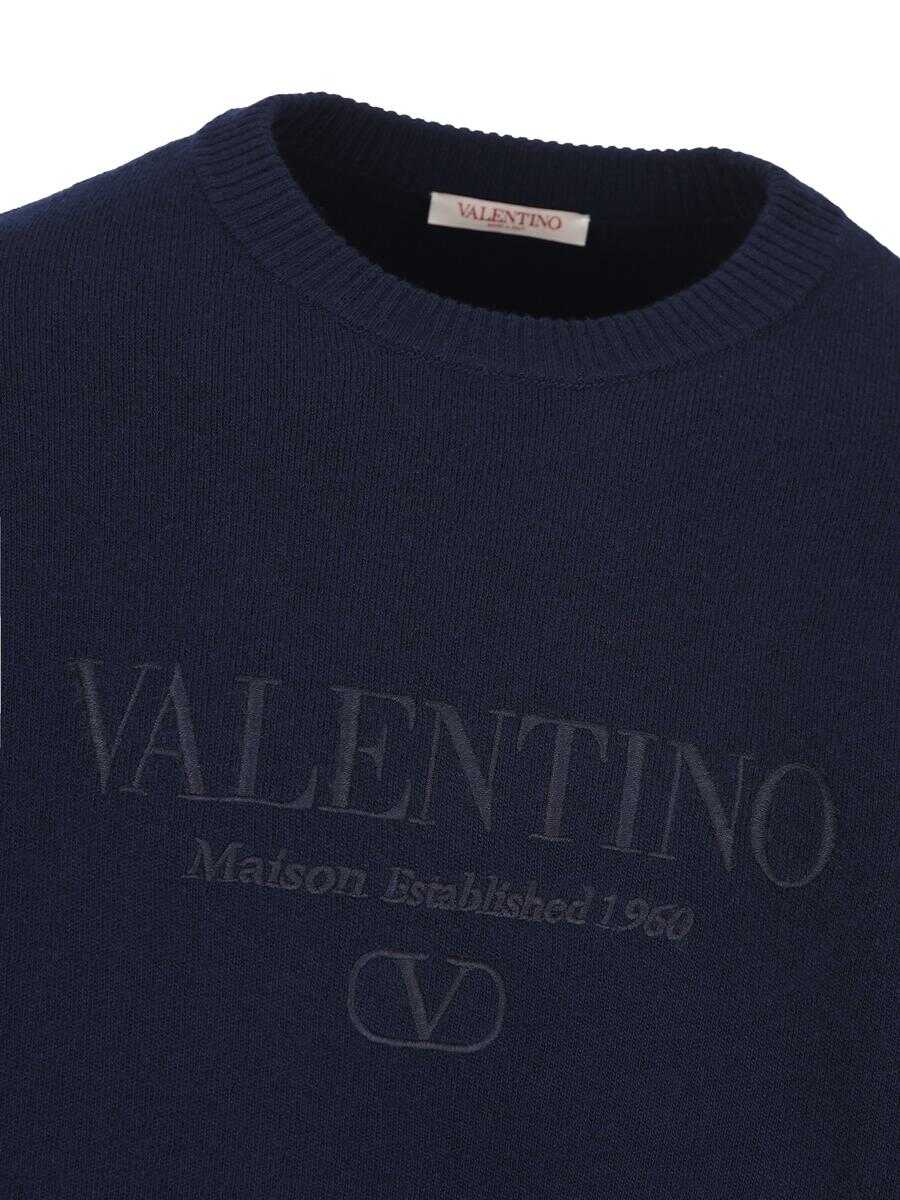 - Material: 100% virgin wool - Color: blue - Other details: Valentino lettering on chest - Made in Italy - Item code: 5V3KC30AACF598 - Regular fit -.