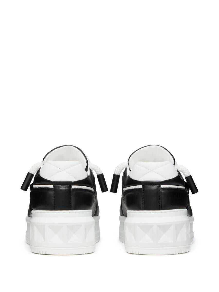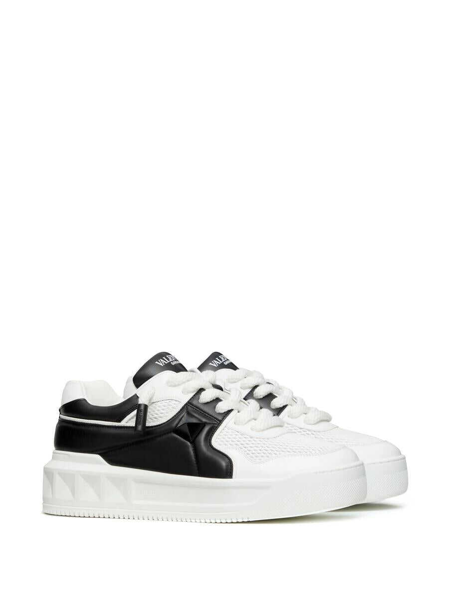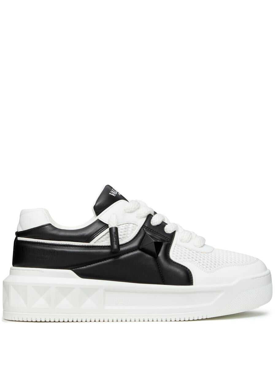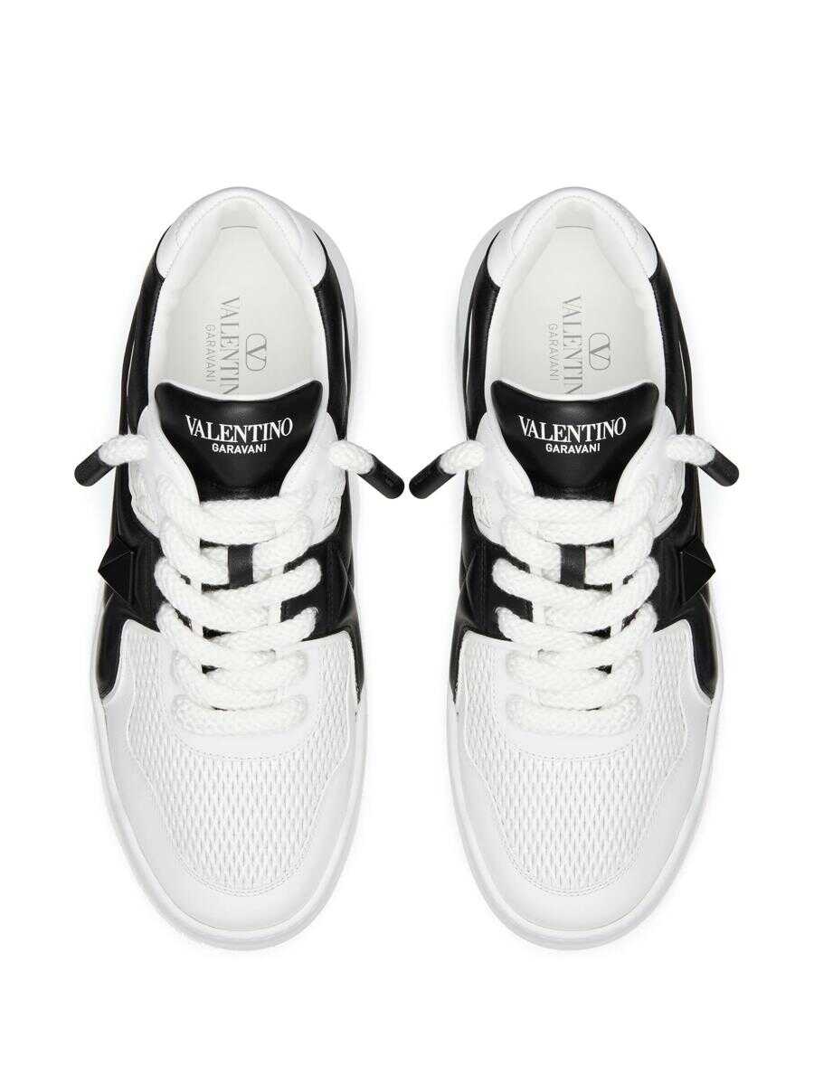 white/black calf leather mesh panelling signature Roman Stud detailing logo-debossed tongue front lace-up fastening round toe branded insole chunky rubber sole