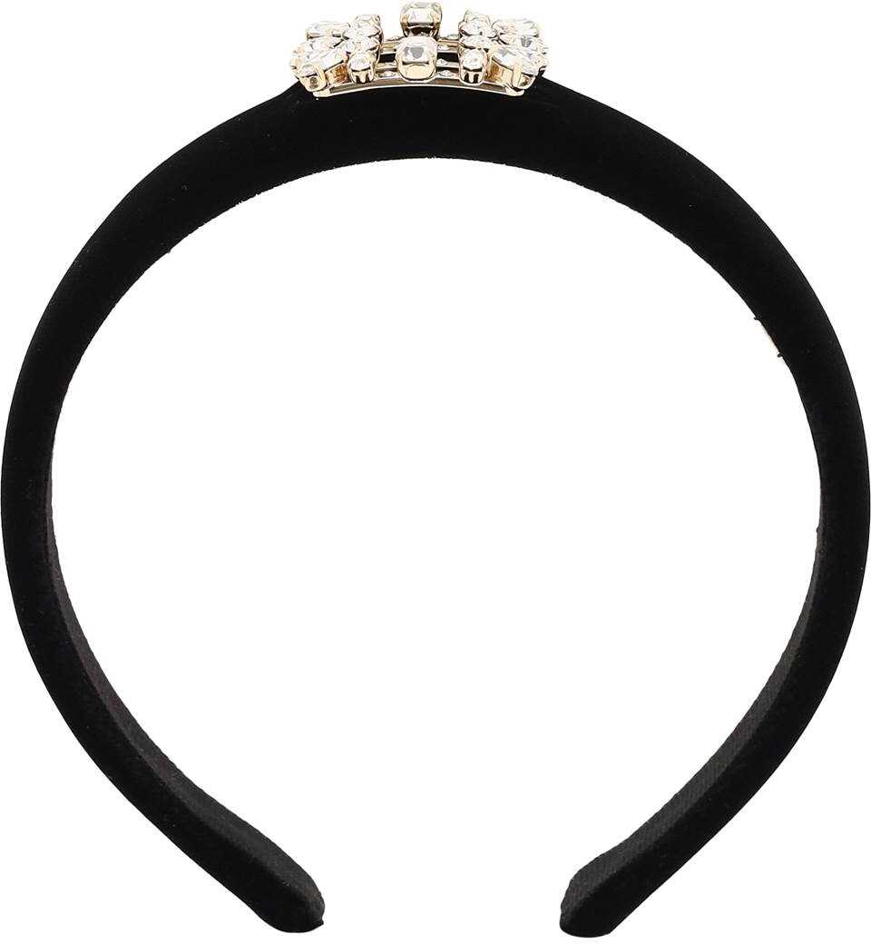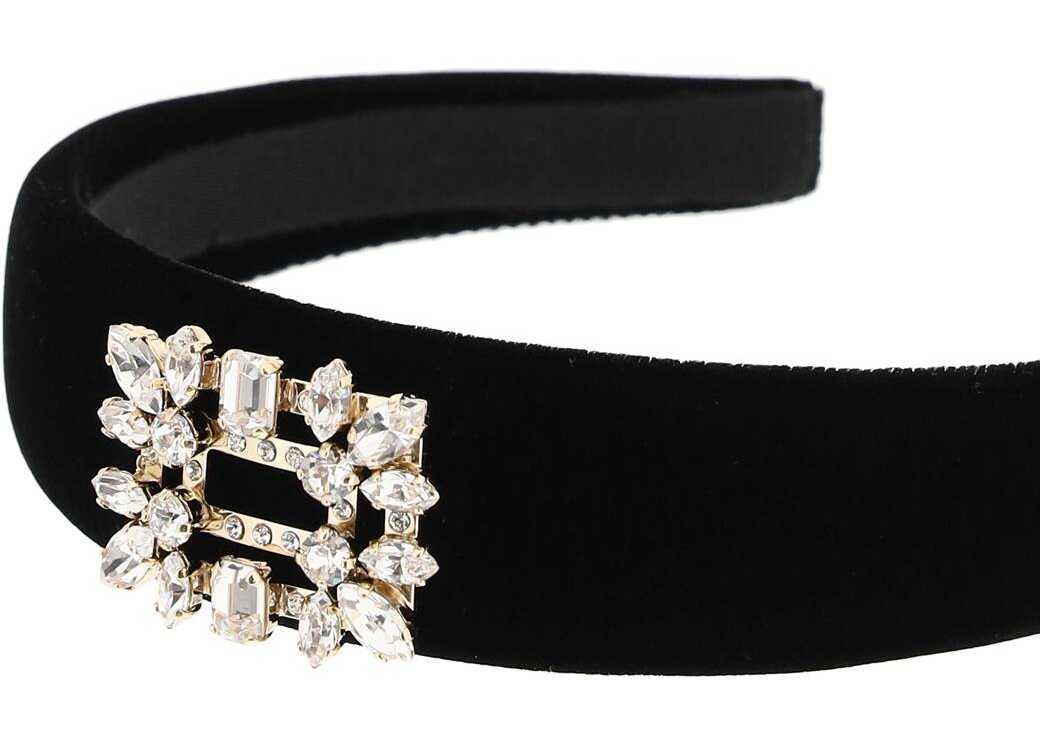 Roger Vivier velvet hairband with a buckle embellished with crystals. Gros-grain interior with logo patch. One size.