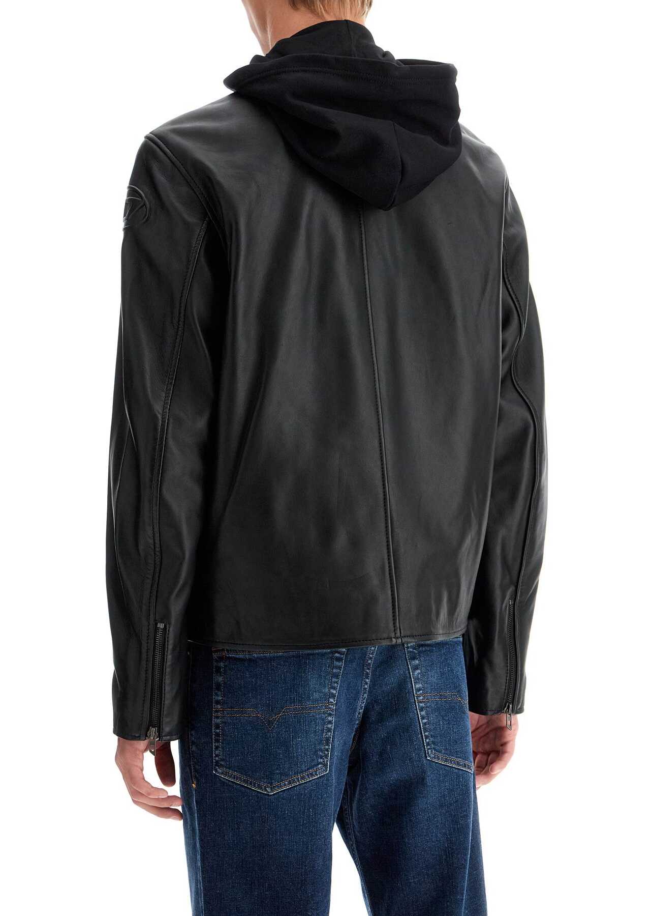 The Diesel biker jacket is made of soft, natural used leather with a slightly boxy cut and bold raised Oval D logo on the left sleeve. It features a snap button collar, two-way zip closure, front zip pockets, and zip openings on the cuffs. Lined in fabric with one pocket. The model is 187 cm tall and wears size IT 50.
