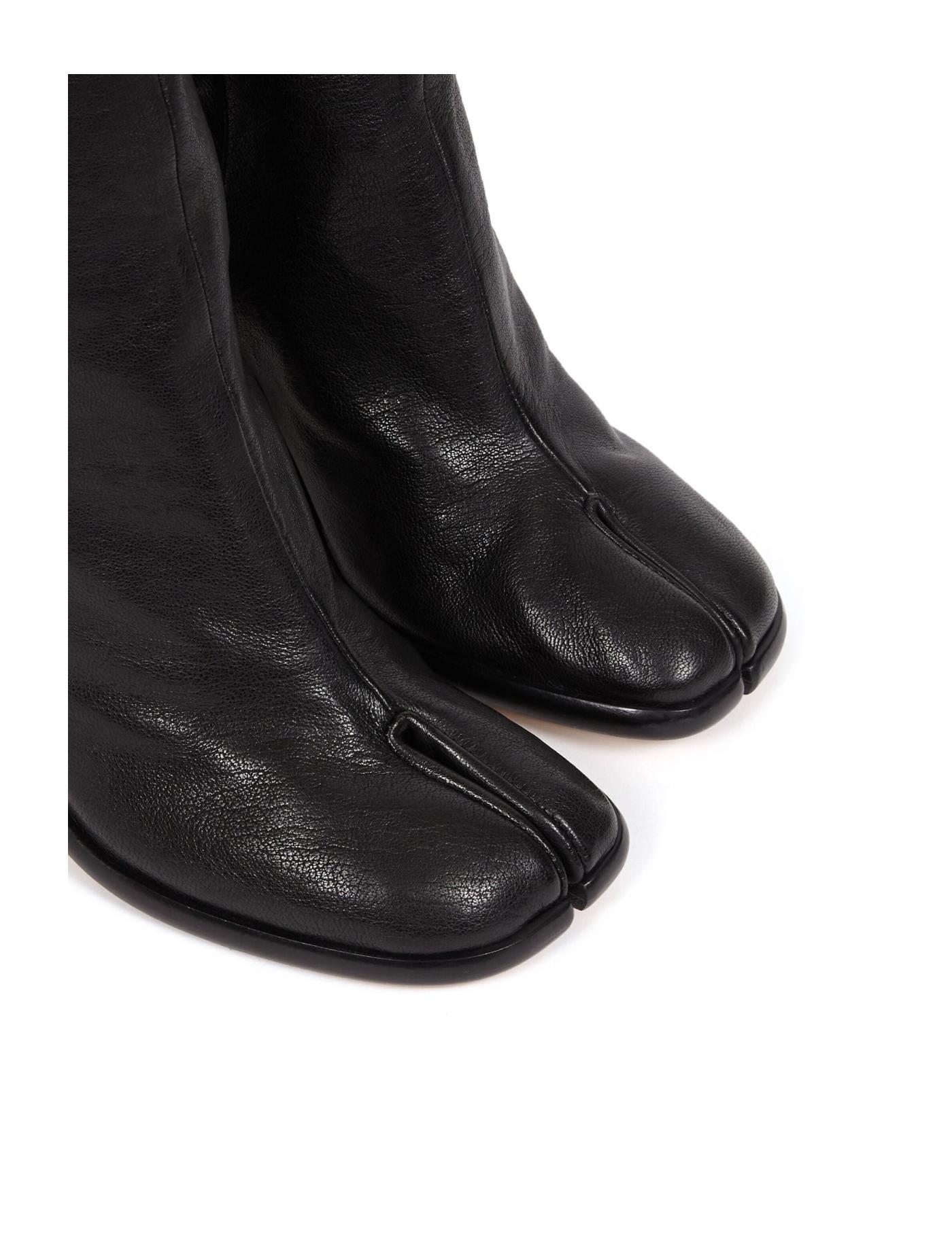 Inspired by traditional Japanese split-toe socks and first introduced in Maison Margiela's debut in 1989, the Tabi toe quickly became the brand's main distinguishing signature. Crafted from black lambskin and displaying the iconic motif, these knee-high boots are a bold choice.