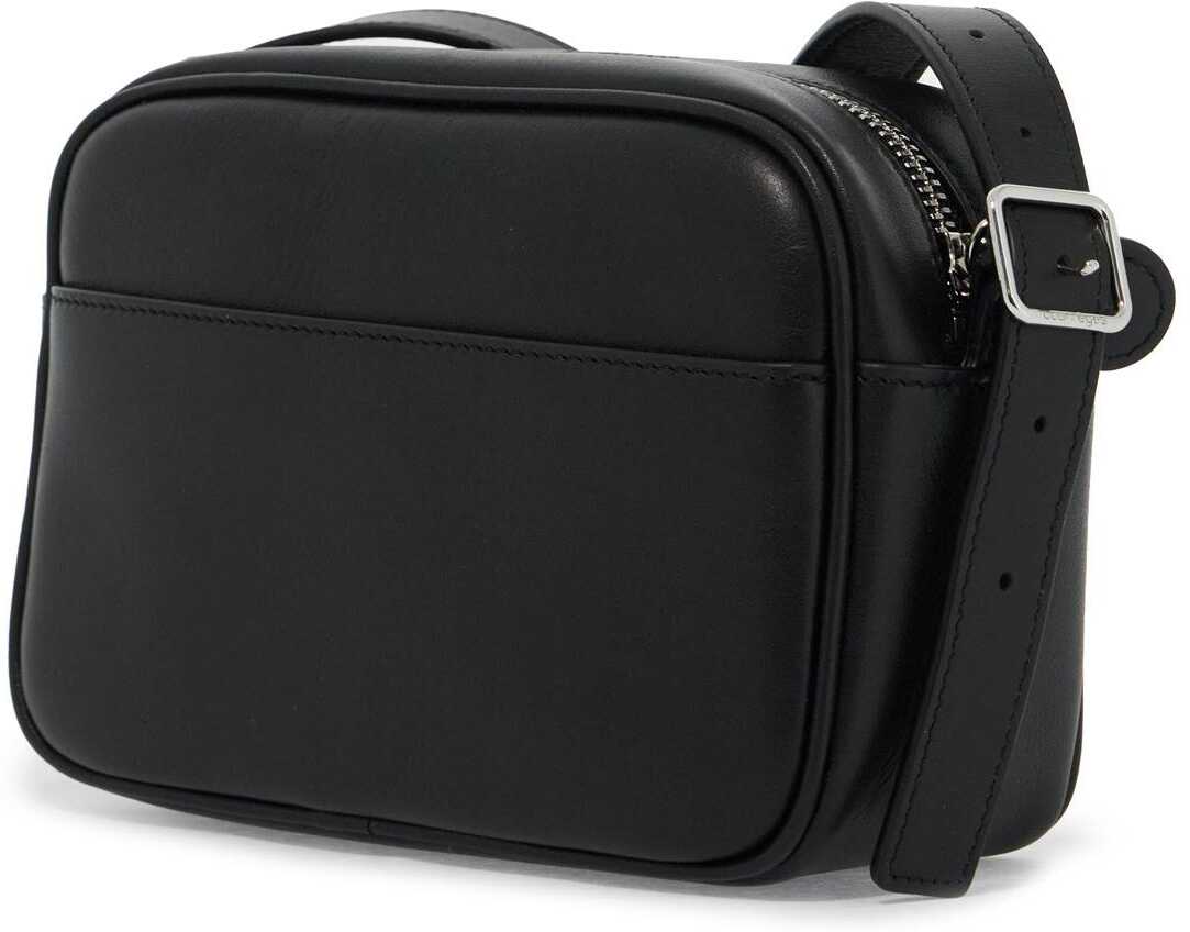 The Reedition camera bag by Courrèges is made of smooth leather with a contrasting monogram inlay. It features a zip closure, fabric interior with a zip pocket and an additional flat pocket on the back. The removable and adjustable handle, as well as the extra crossbody strap, allow for versatile styling options. The metal accessories have a silver finish.