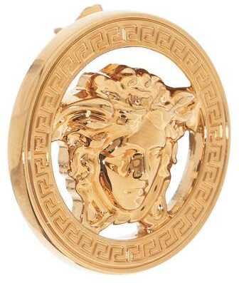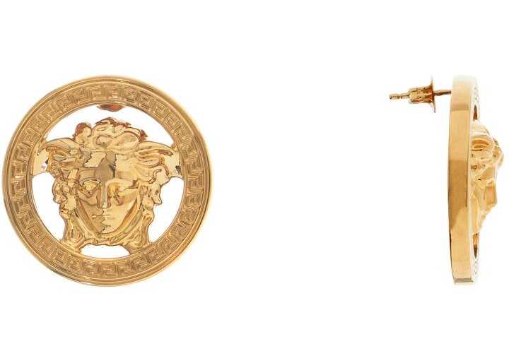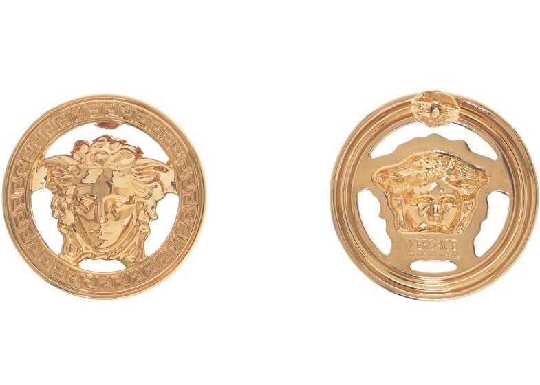 Versace earrings in golden metal with the Medusa '95 emblem framed by a Greek engraving. Lead and nickel free, butterfly closure.