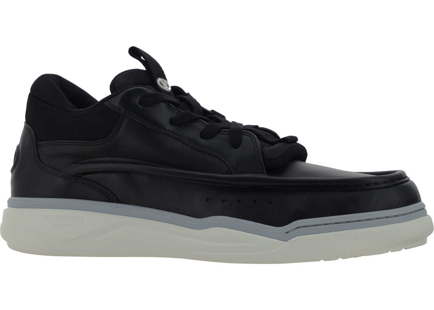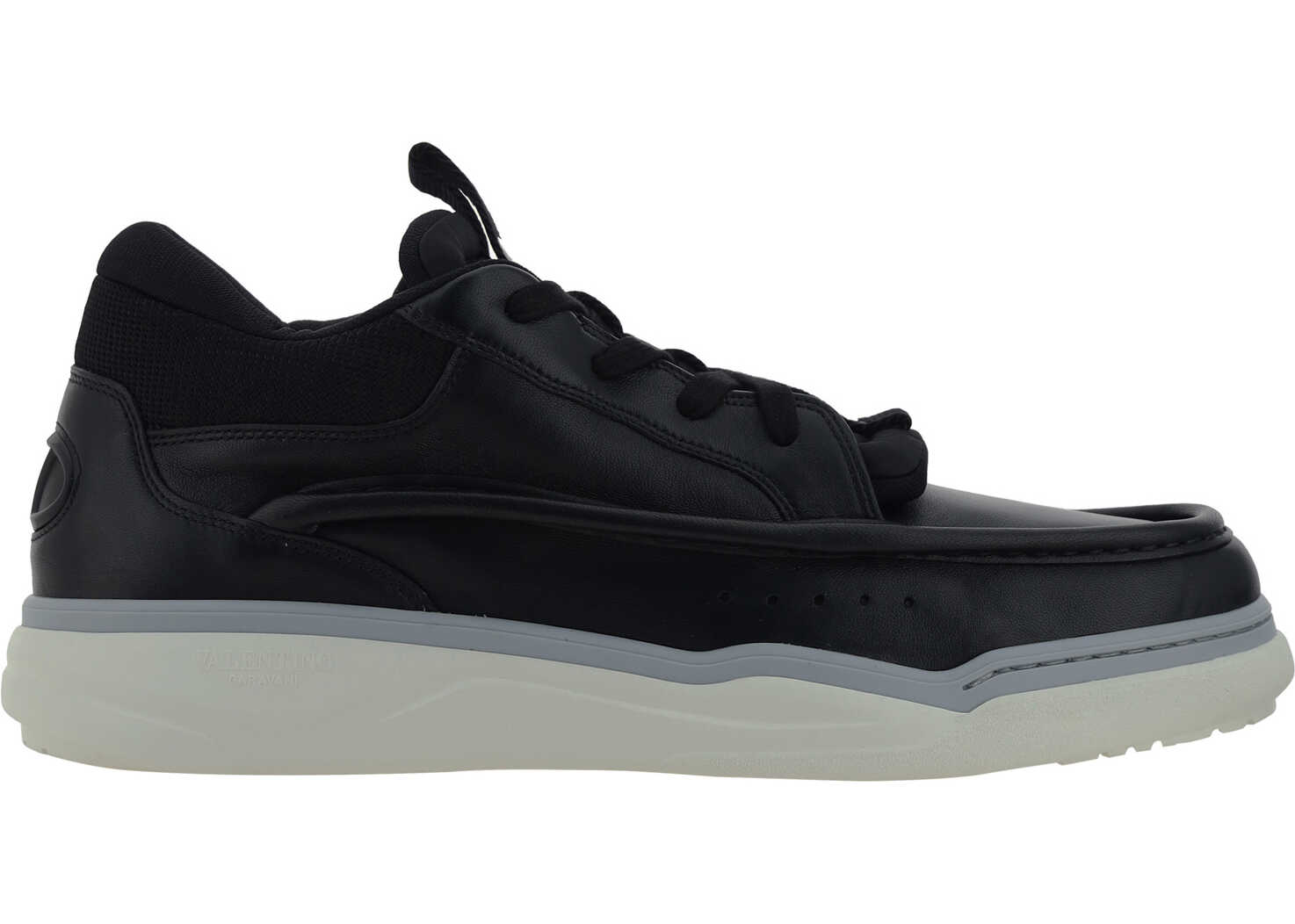 Leather Hybrid Sneakers by Valentino Garavani featuring a lace-up front closure, a monochrome paneled design, an iconic brand monogram press-stamped on front tab, a contrasting sole, and a branded insole.