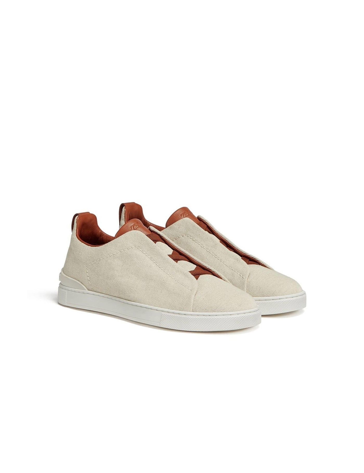 Calfskin Low Top Sneakers by Zegna, suede leather design, flat sole, slip-on style, press-on logo insole.
