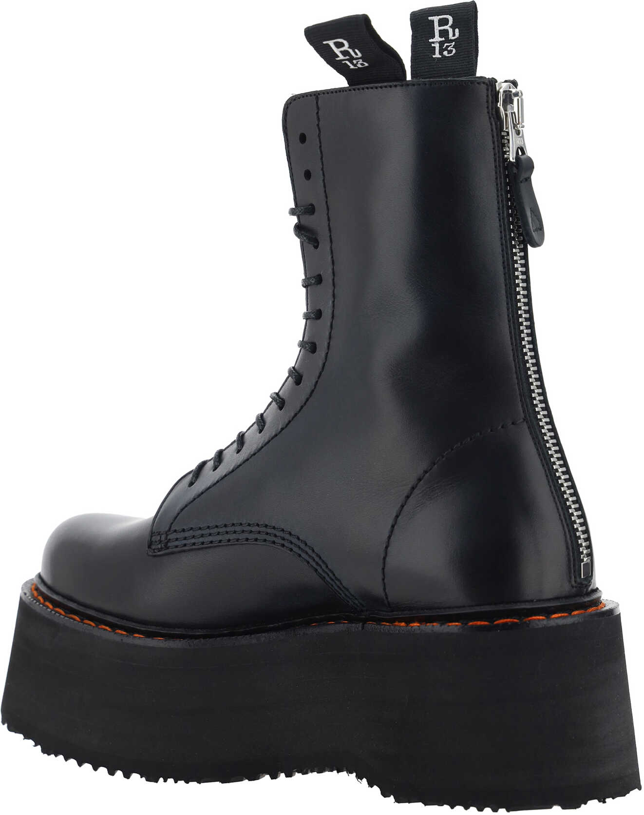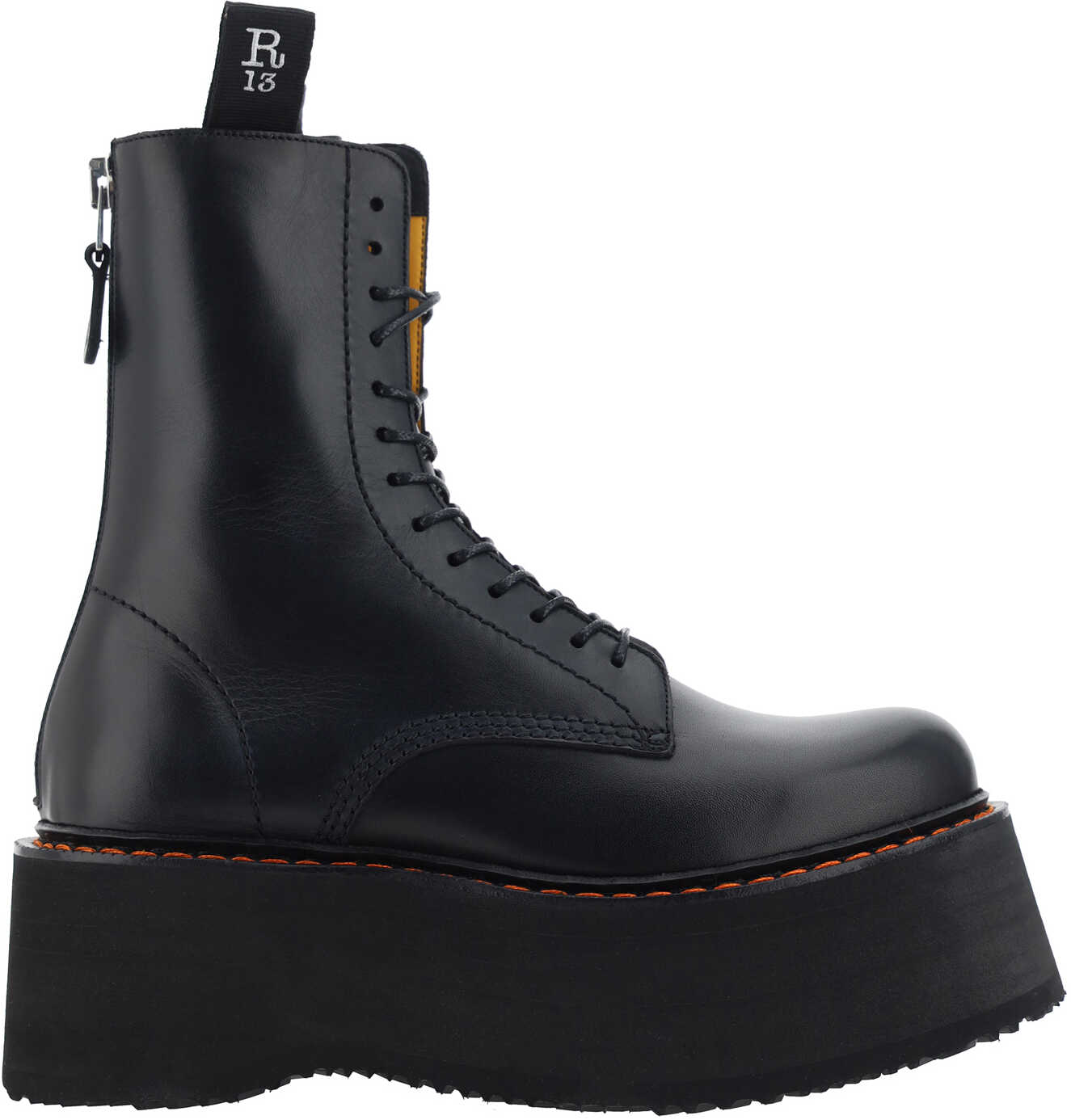 Leather Boots by R13, oversized design, front lace-up closure, oversized knurled and non-slip platform sole, applied zipper detail on heel for fit, double pull on front and back.